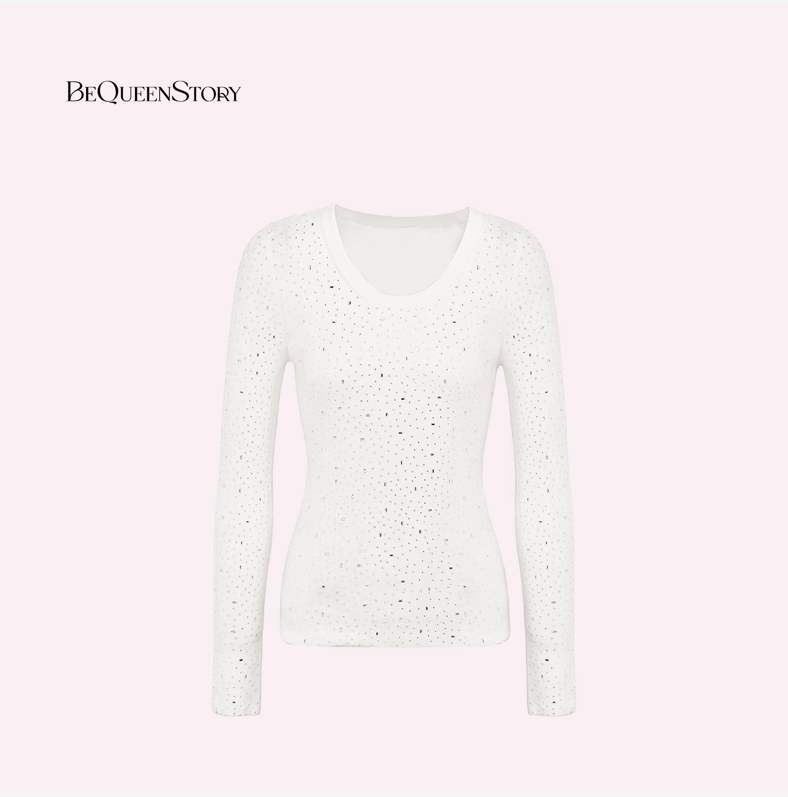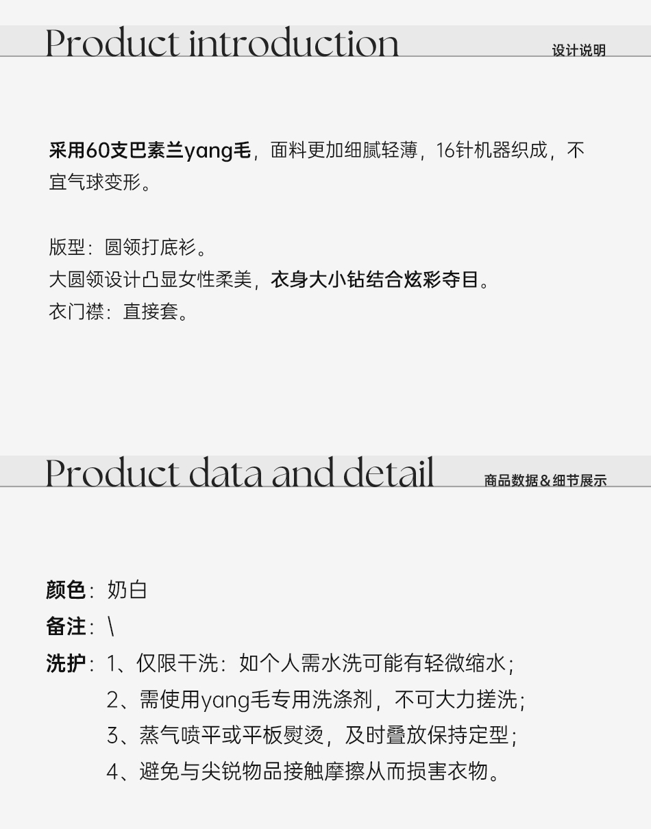 时尚百搭【星月童话】巴素兰绵羊毛混纺烫钻大圆领针织打底衫秋冬