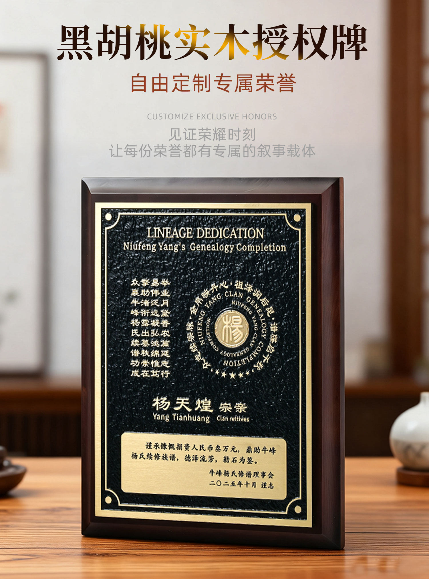 高端授权牌周年刻字光荣退伍企业年会奖杯奖牌铝板黄铜亚克力浮雕