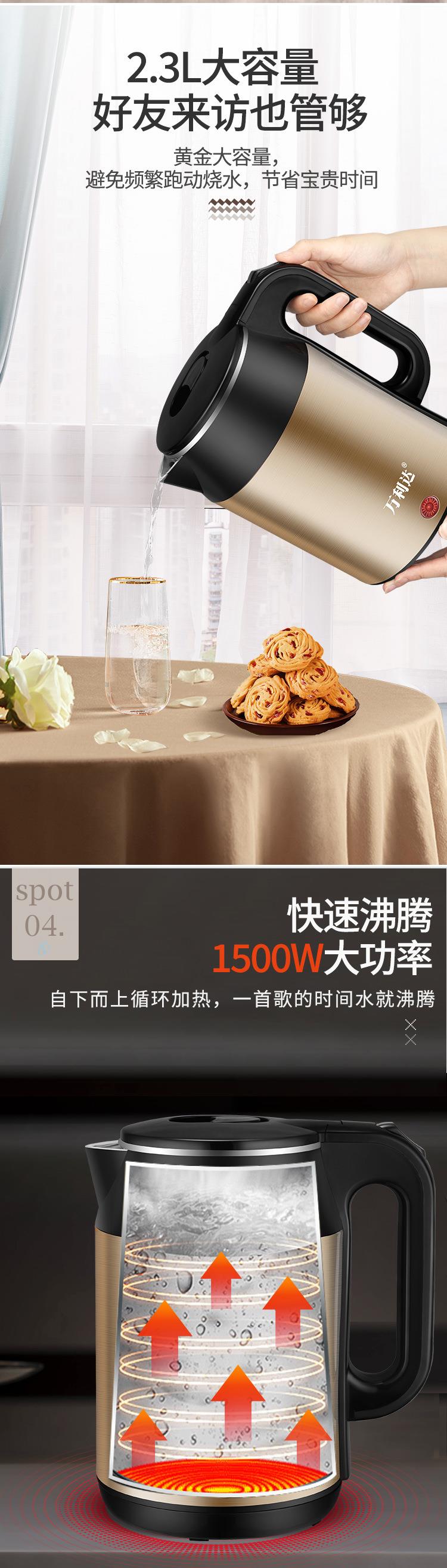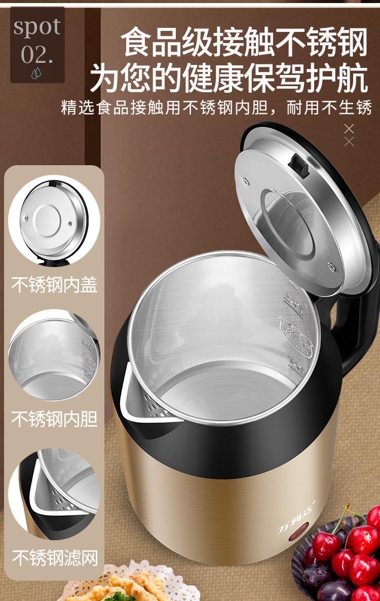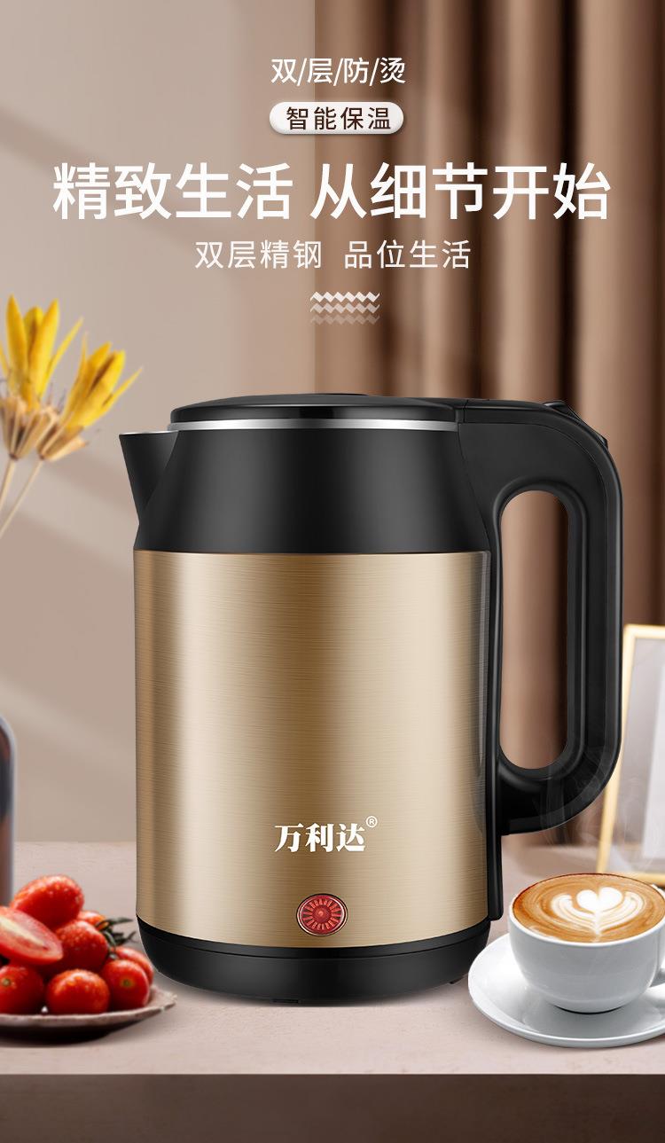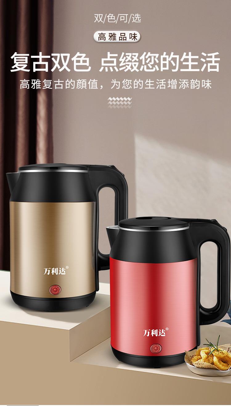 厂家直供电热水壶不锈钢 家用万利达烧水壶批发自动断电礼品代发