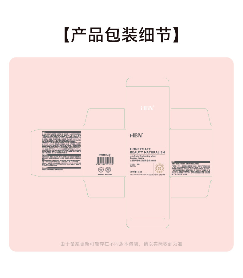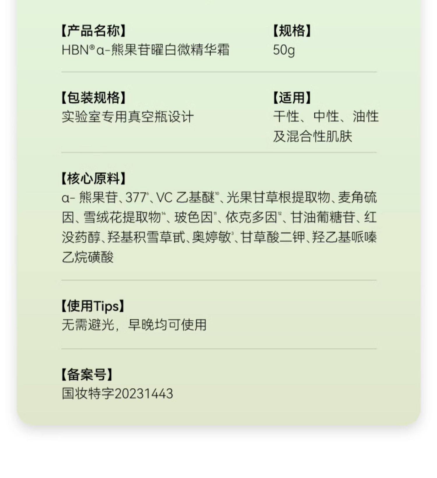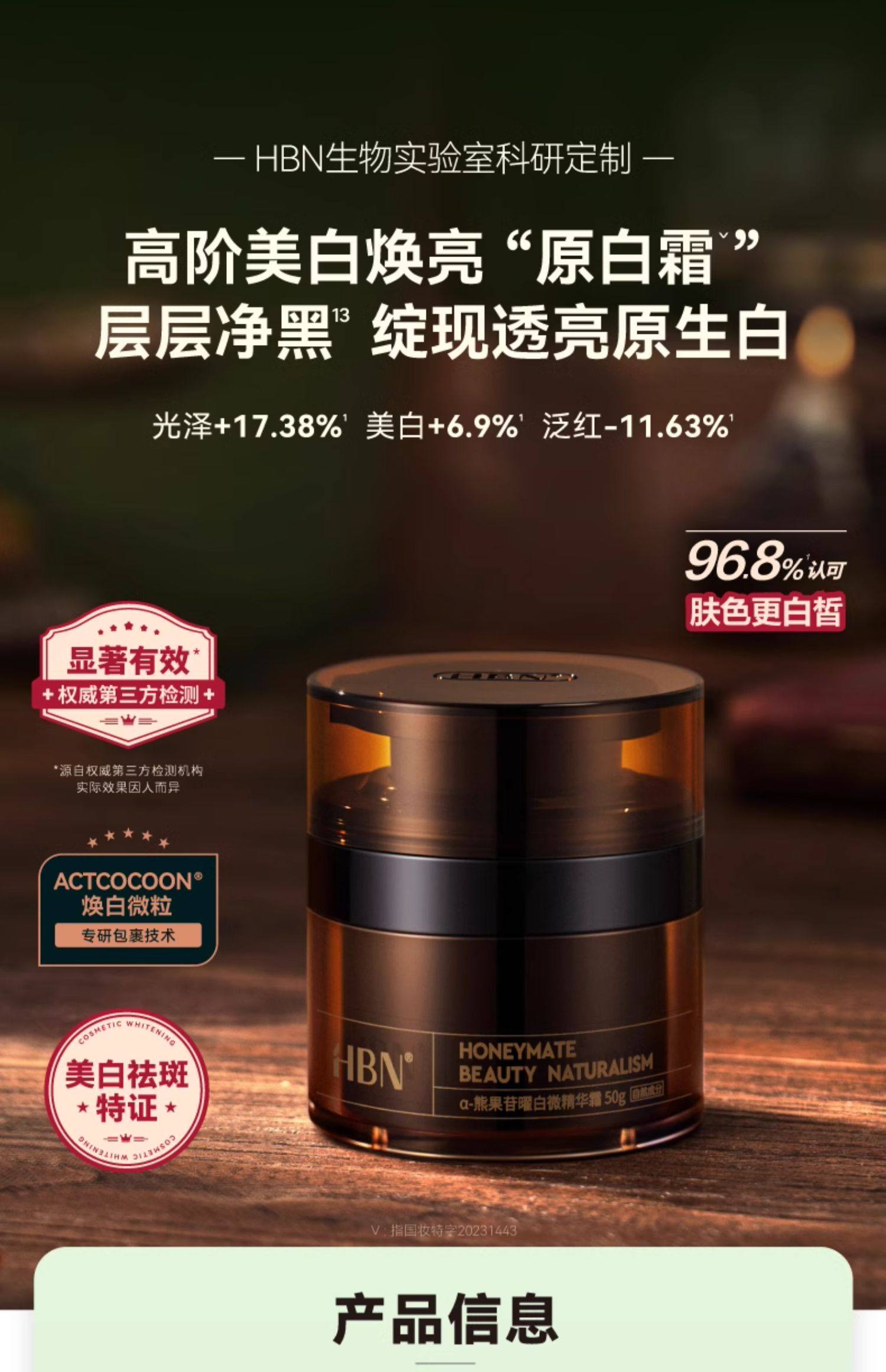 HBN原白霜美白面霜 熊果苷淡ban精华保湿补水清爽修护敏感肌女