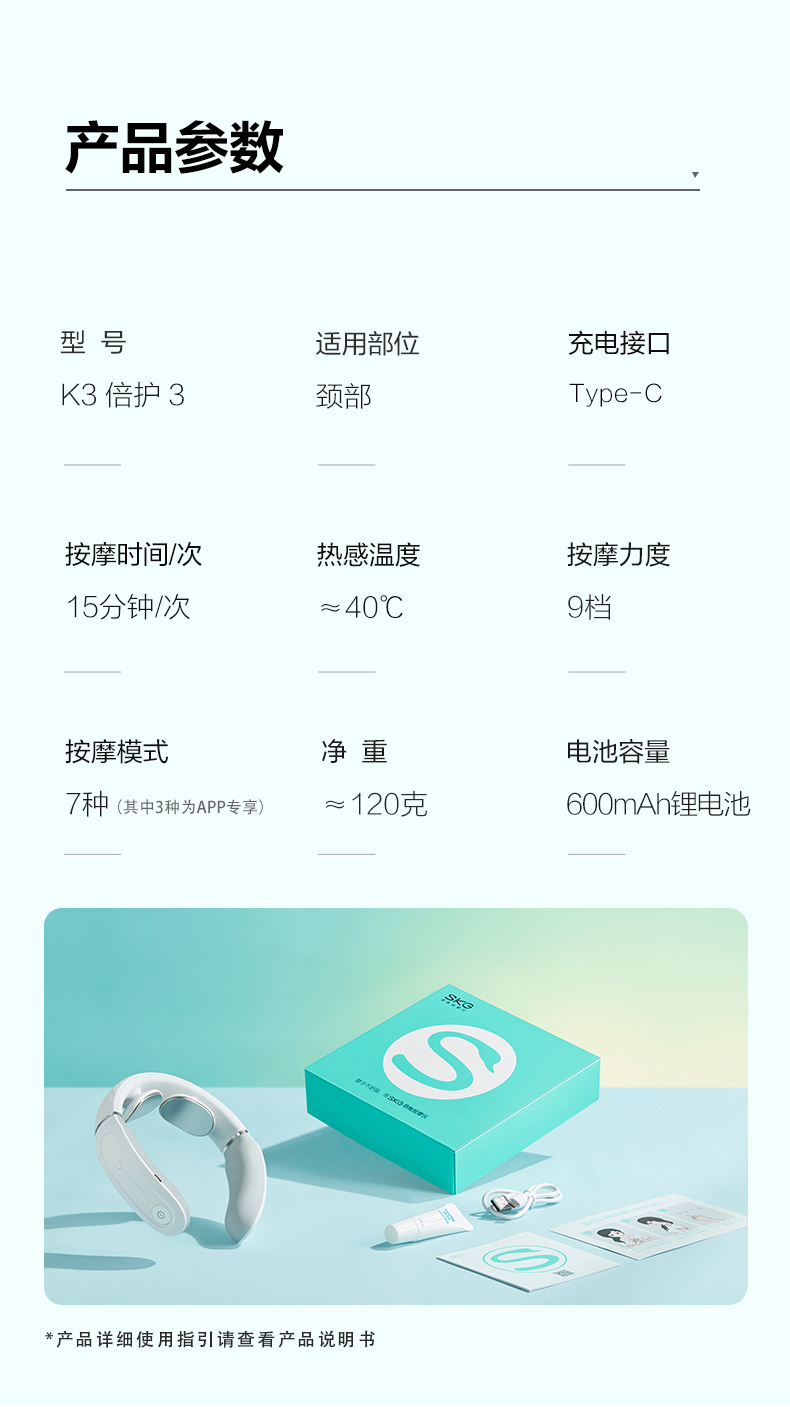 SKG颈椎按摩器K3倍护3蓝牙护肩颈部脖子热敷脉冲仪便携轻巧送男女朋友生日礼物实用 蓝牙智控-K3倍护