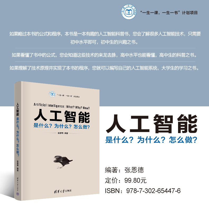 本书是一本介绍人工智能技术的初级读物,并不需要读者有深厚的计算机和数学基础,可以作为高等院校任何专业(不局限于计算机相关专业)的人工智能课程教材。