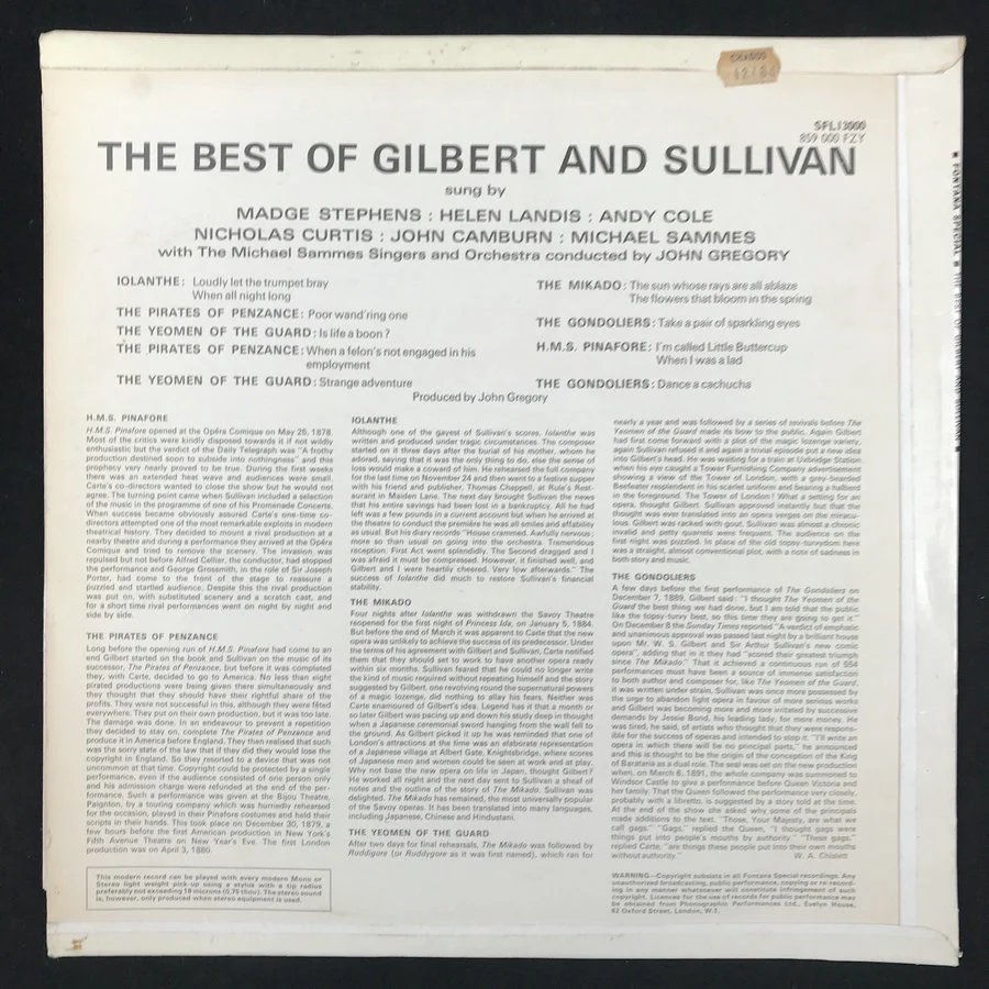 LP黑胶唱片 剧作家吉尔伯特与作曲家苏利文合作喜剧 杰作选厂牌:Fontana
