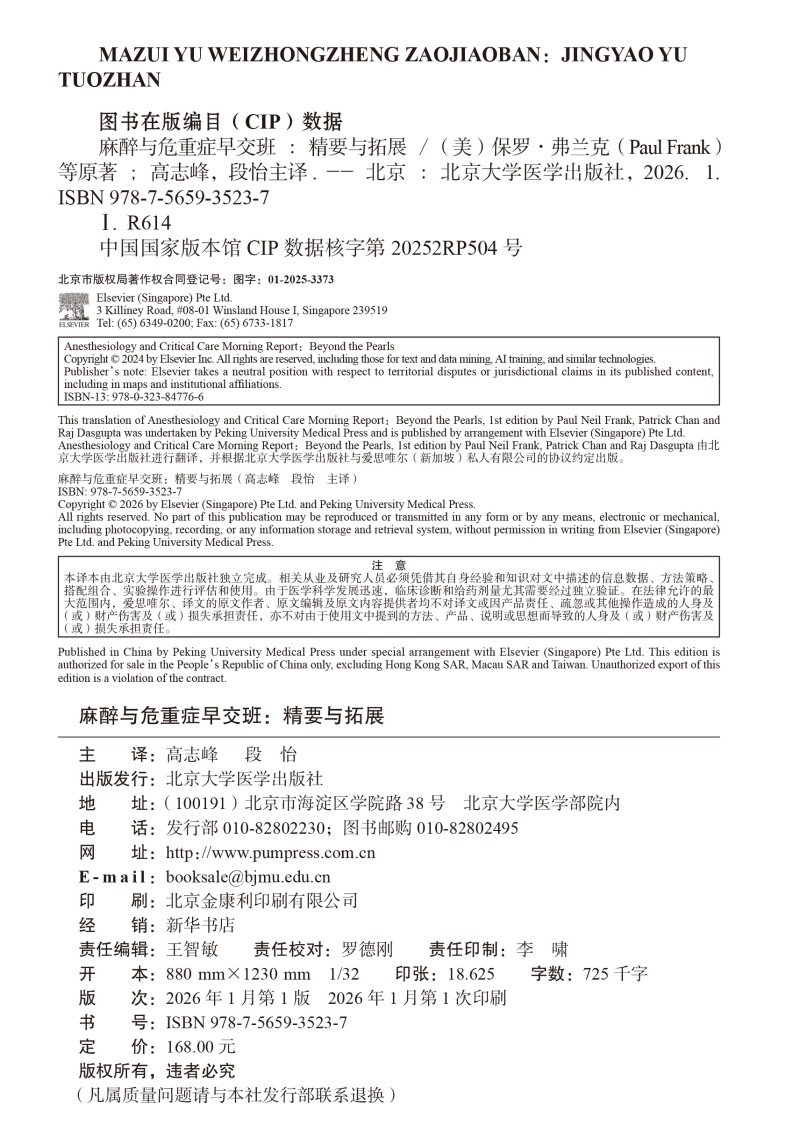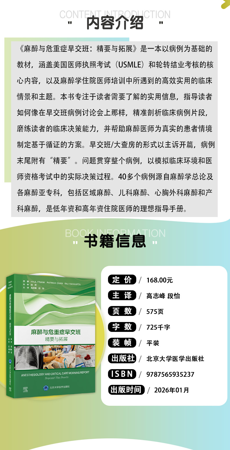 麻醉与危重症早交班 精要与拓展 高志峰 段怡 主译 高效实用 基于病例的学习用书 麻醉学住院医师培训的理想之选北京大学医学出版社