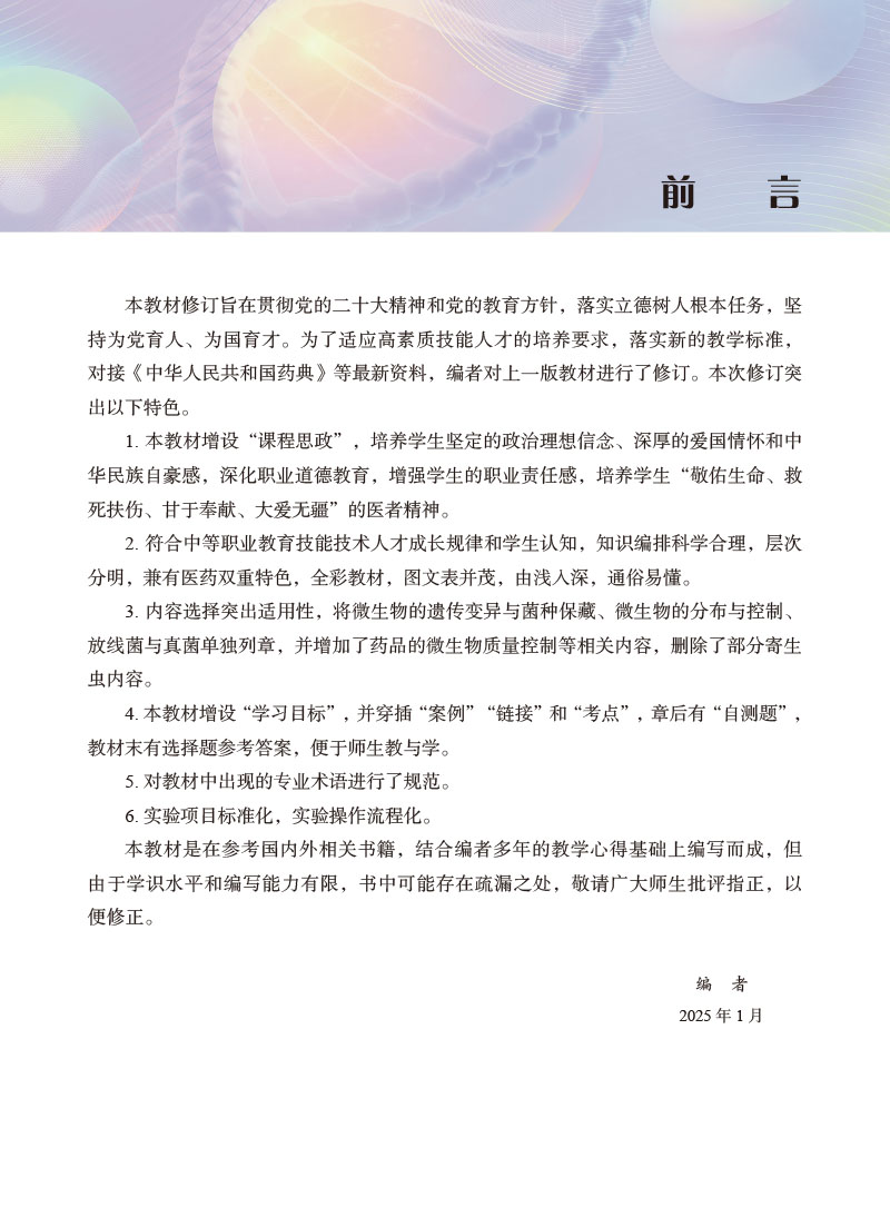 中等职业学校药剂、制药技术、中医、中药、中药制药、医学生物技术等相关专业使用。