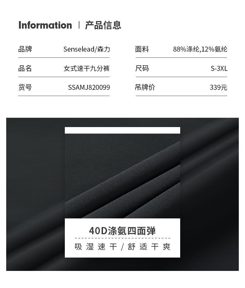 Senselead|女式速干九分裤 SSAMJ820099