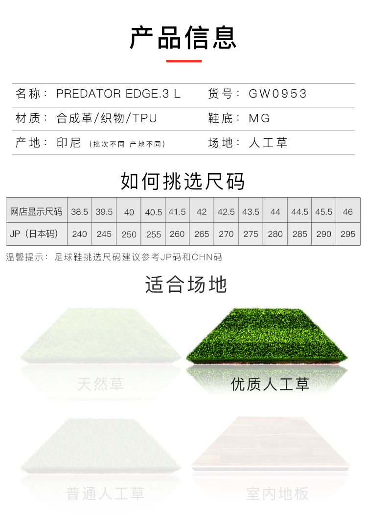 ADIDAS/阿迪达斯 PREDATOR EDGE.3 L MG猎鹰中端高帮MG足球鞋GW0953