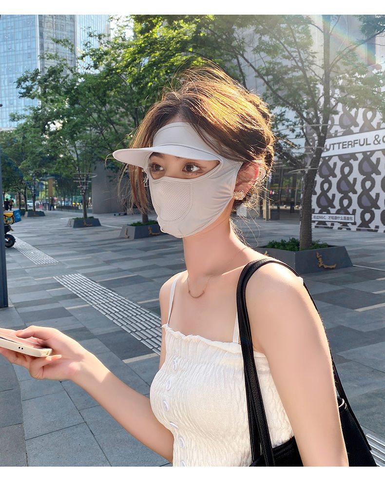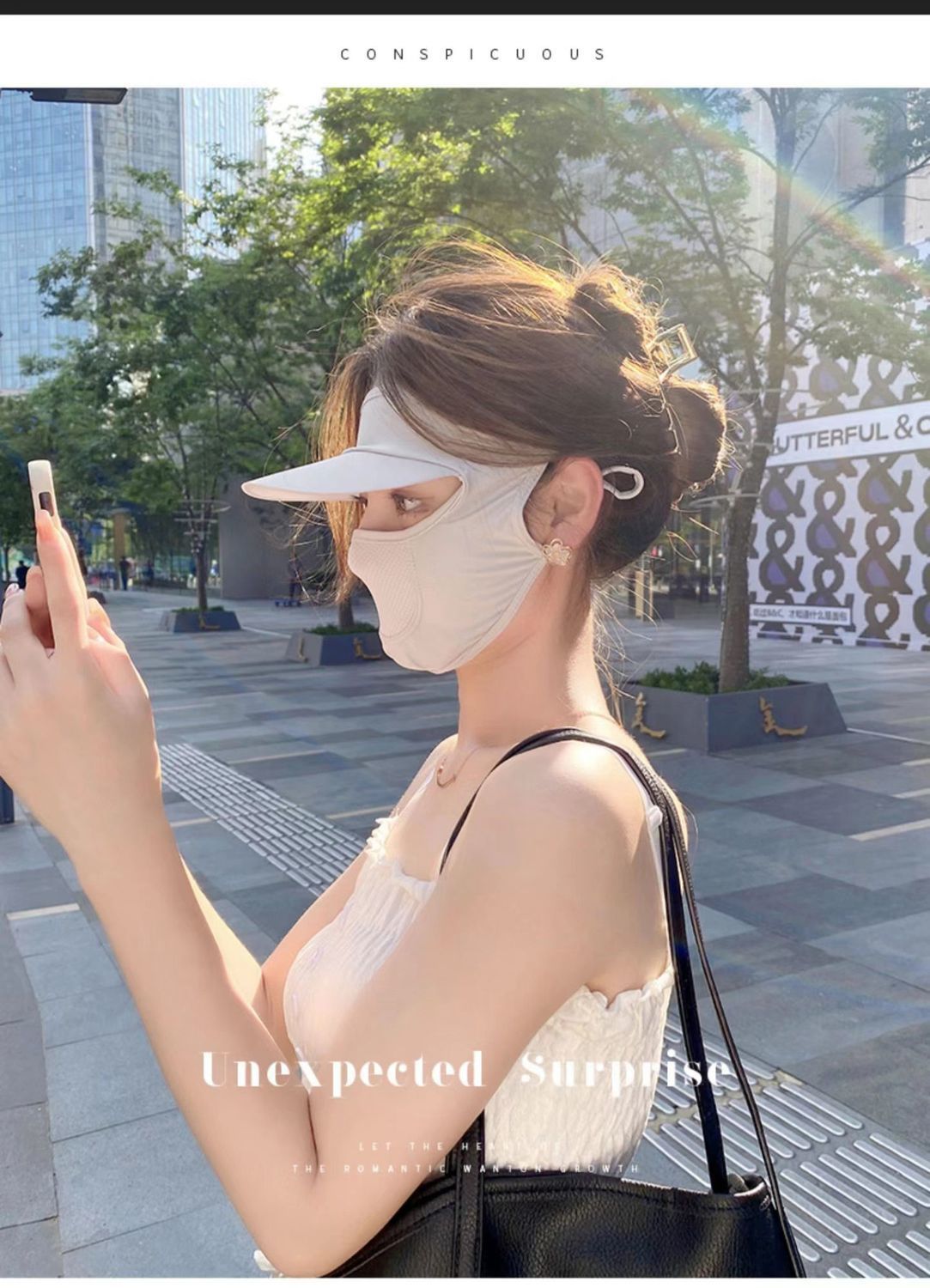 【冰丝帽檐防晒口罩】防晒面罩遮全脸,防紫外线女,夏季薄款带帽檐,冰丝透气防晒口罩。ry
