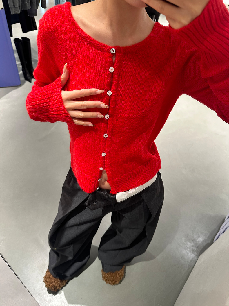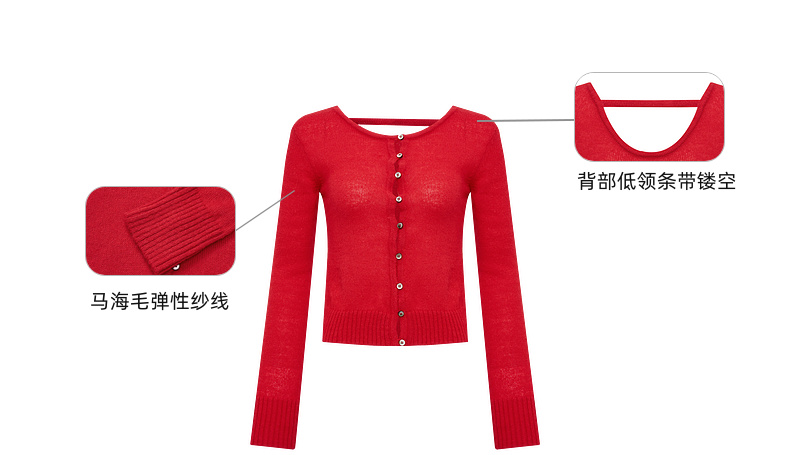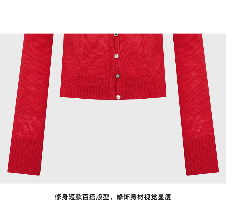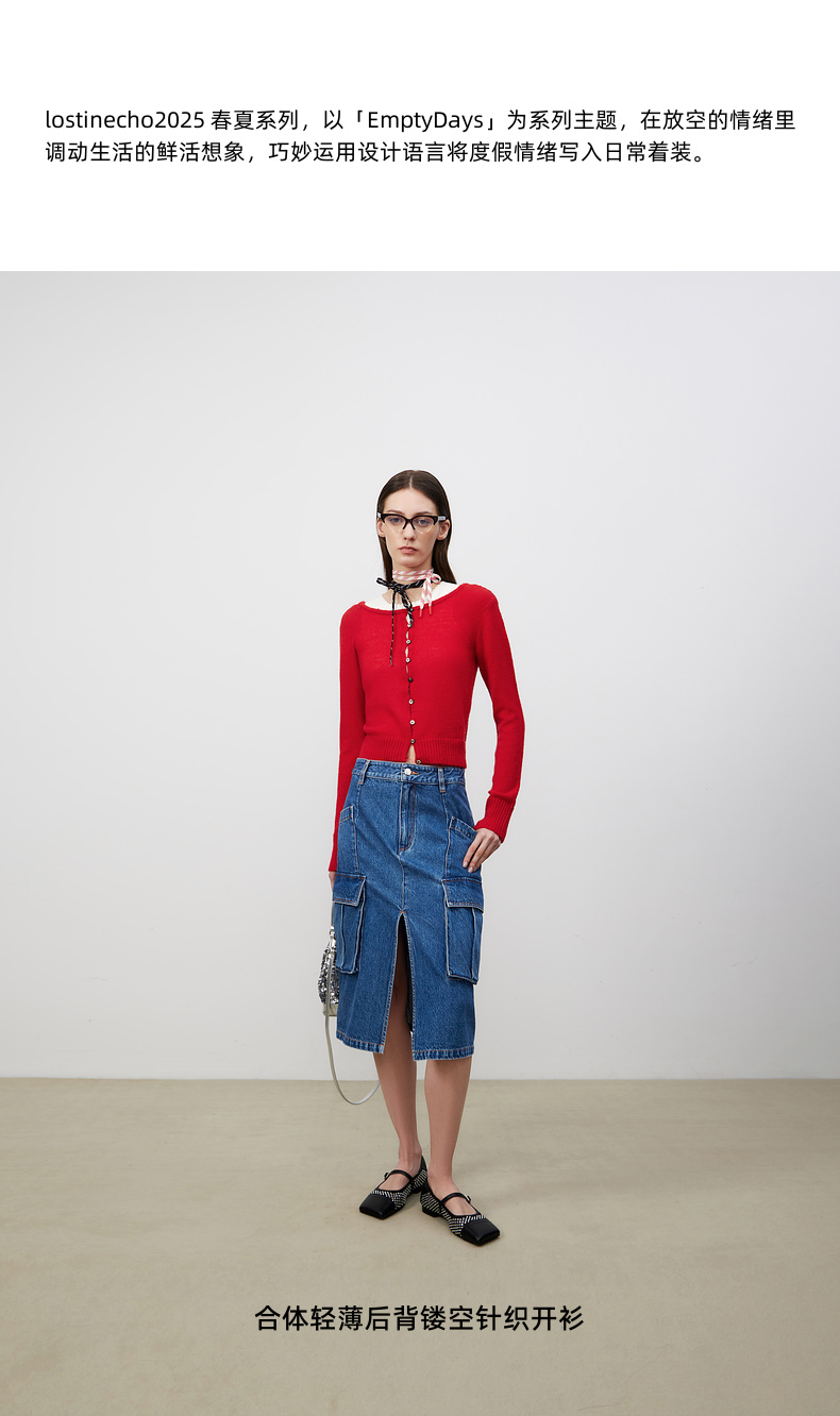 lost in echo2025春夏新款红色马海毛轻薄修身打底针织开衫上衣女