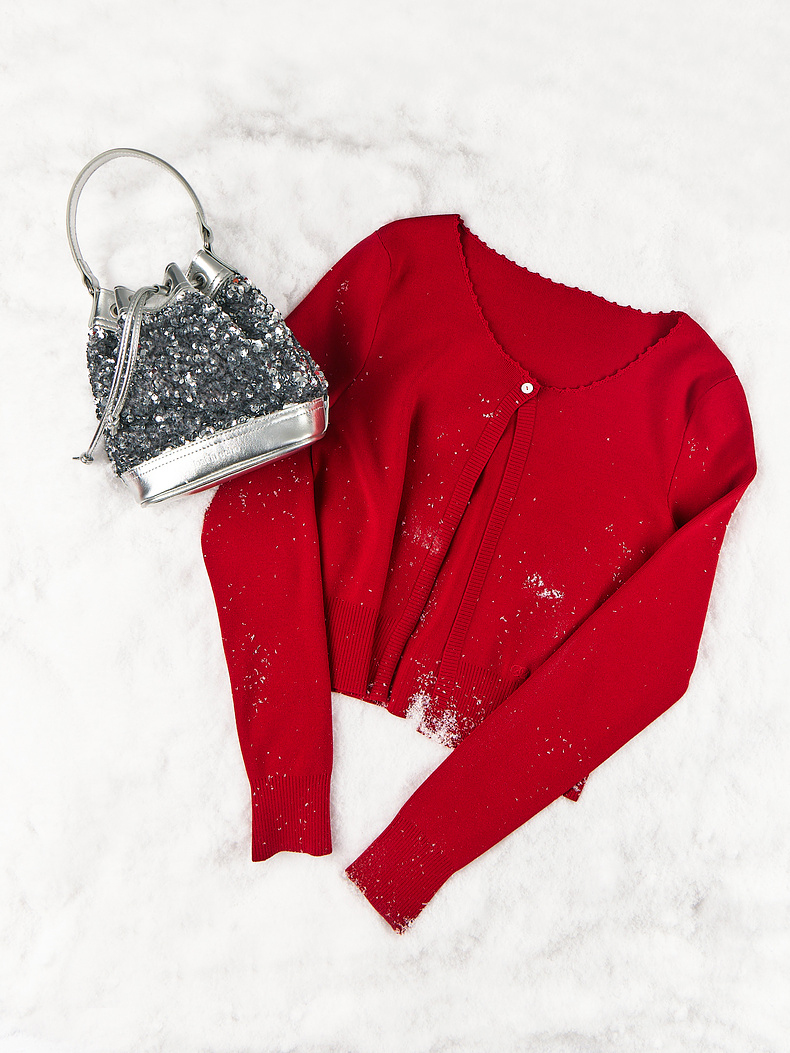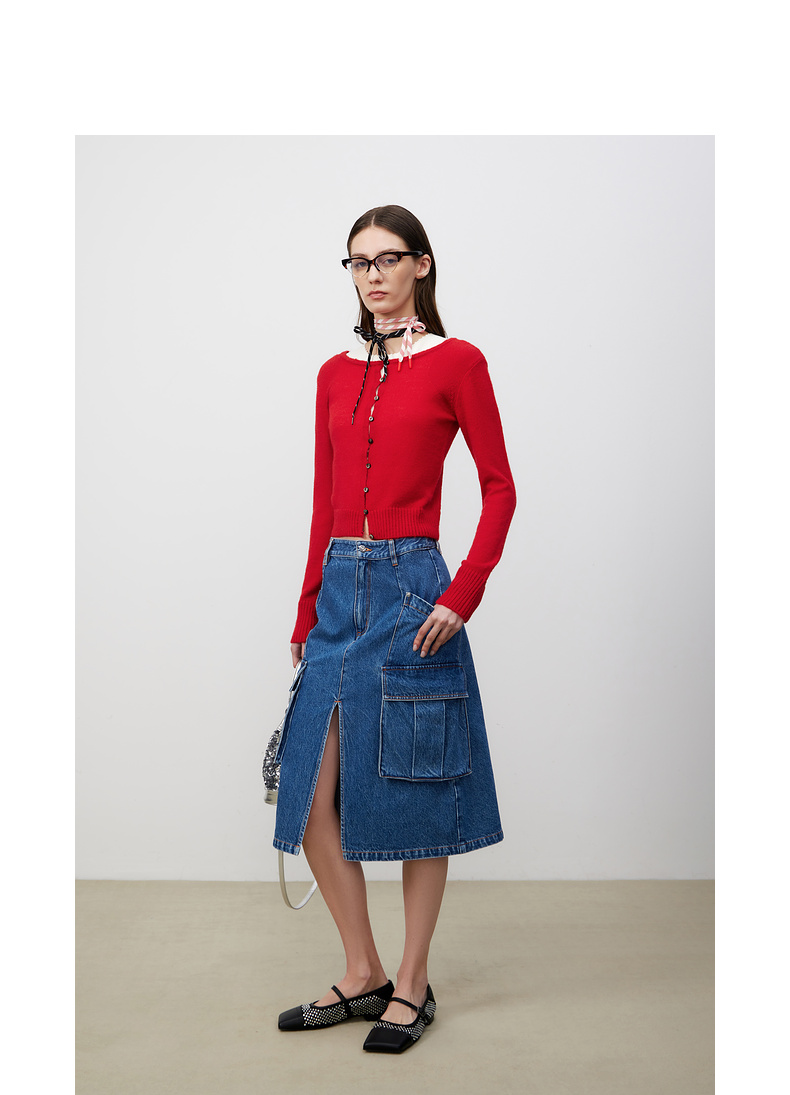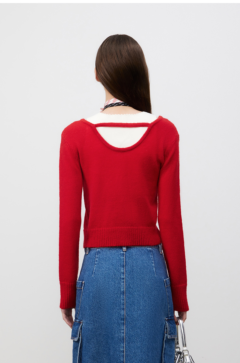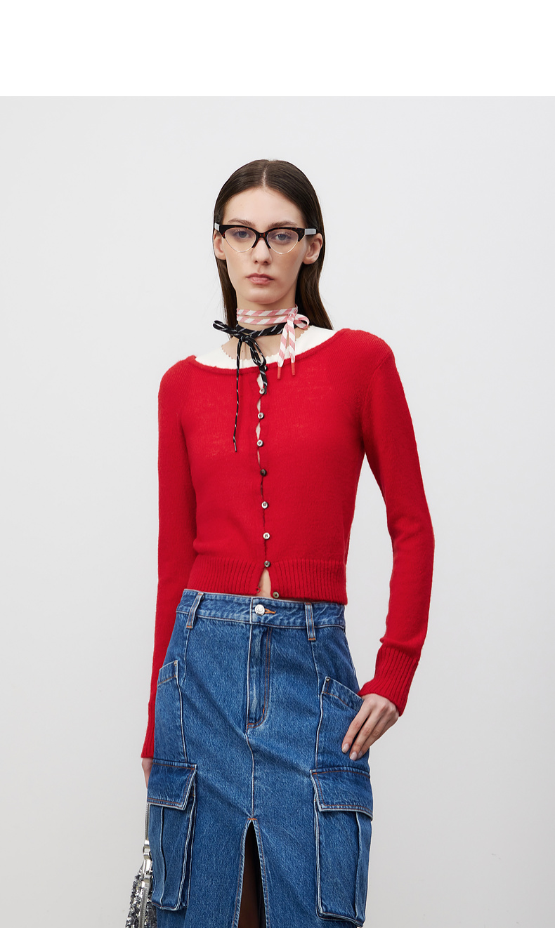 lost in echo2025春夏新款红色马海毛轻薄修身打底针织开衫上衣女