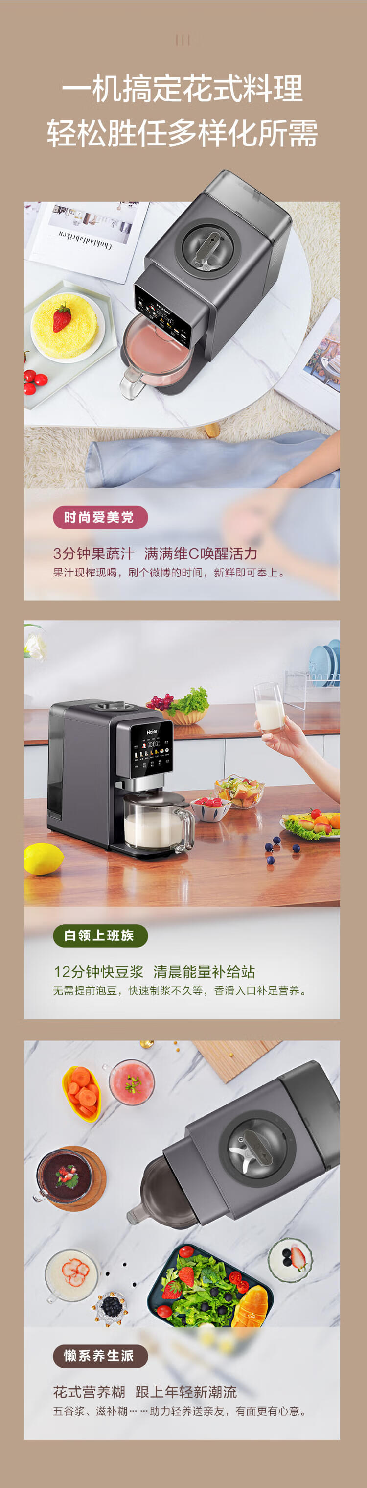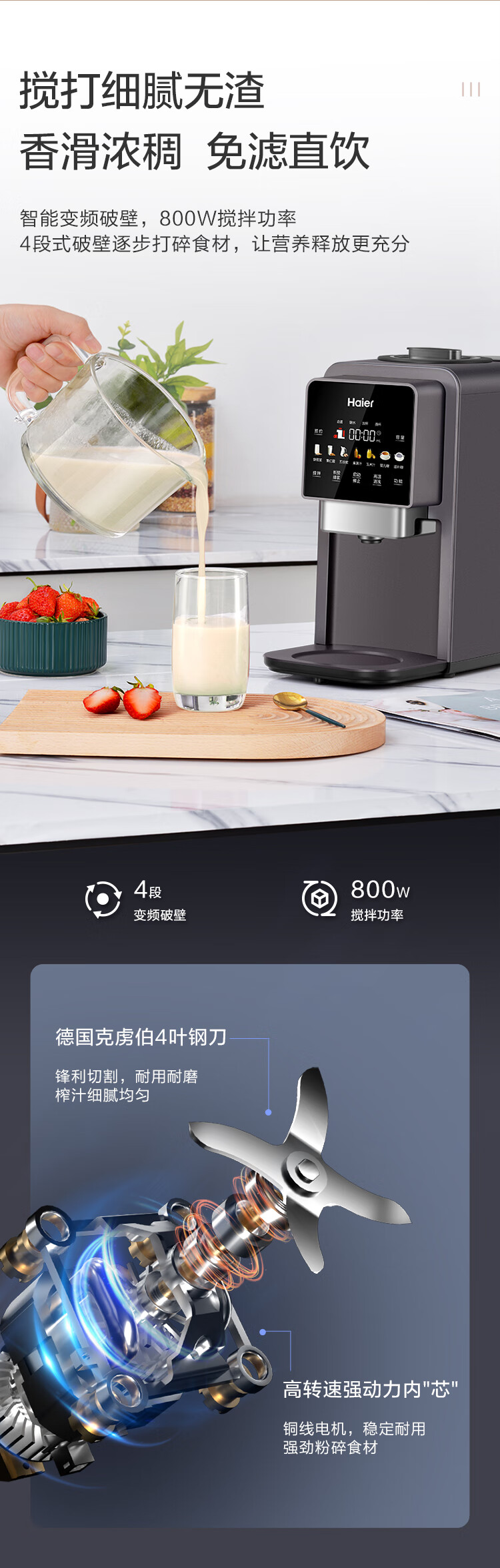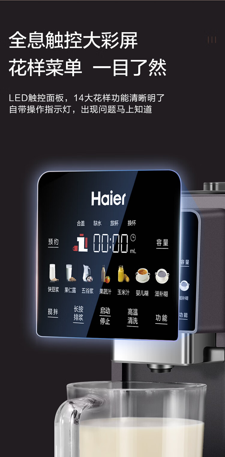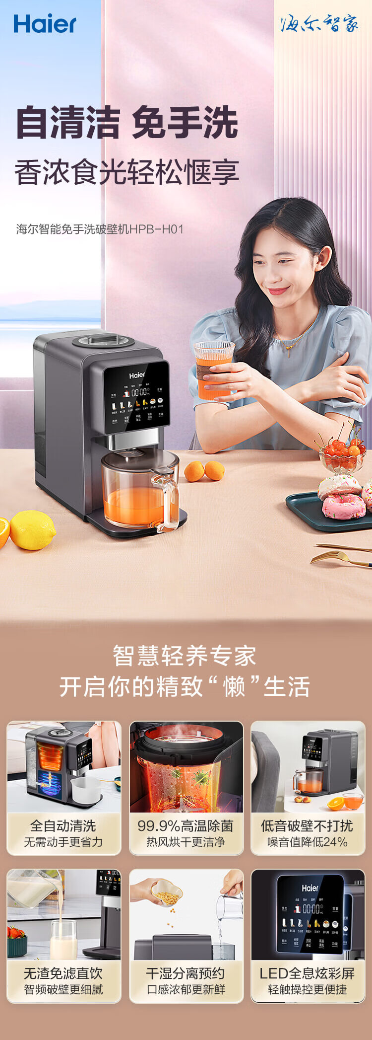 海尔家用全自动自清洁免手洗静音多功能智能预约全息彩屏破壁机 HPB-H01