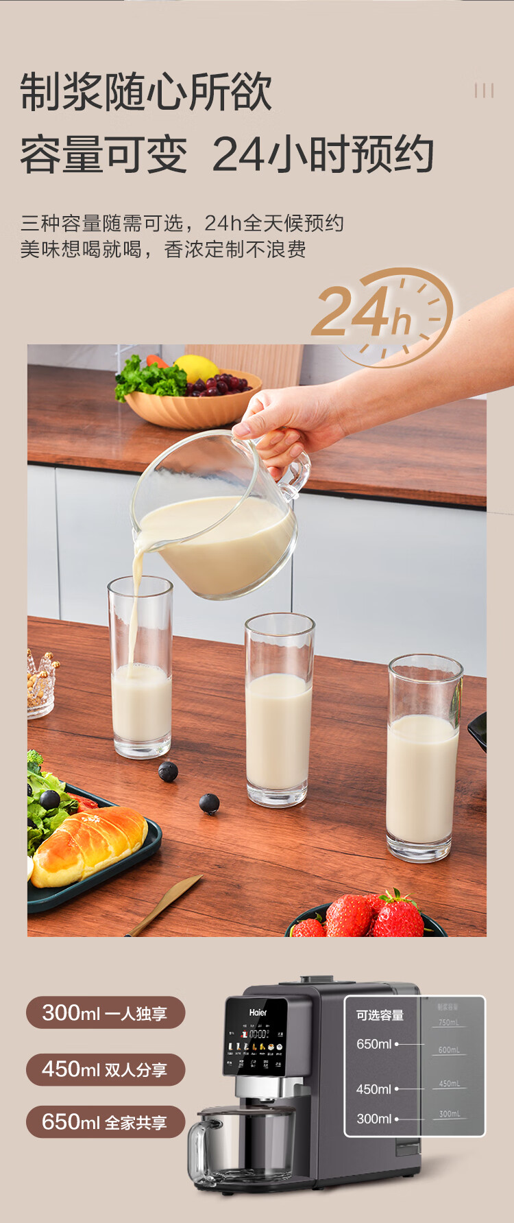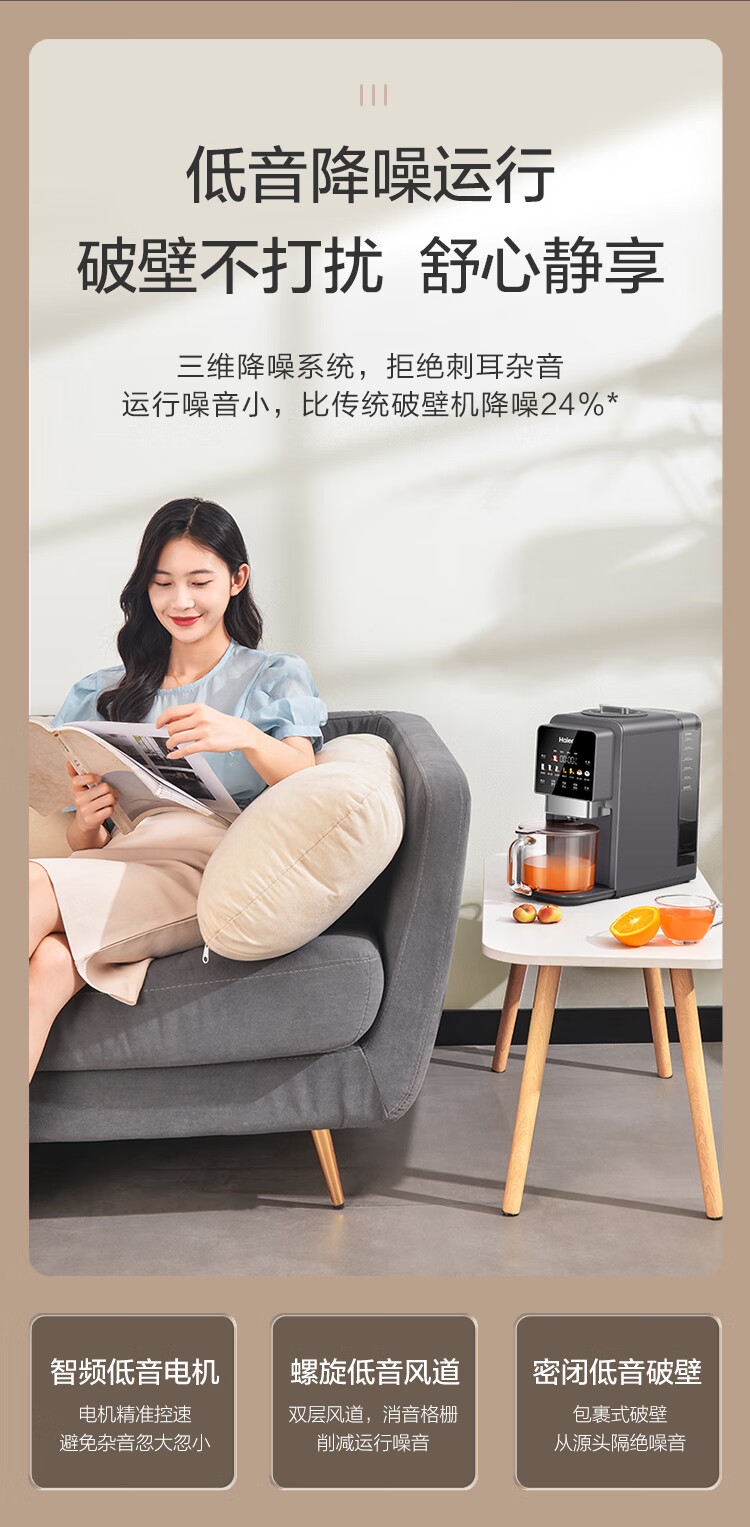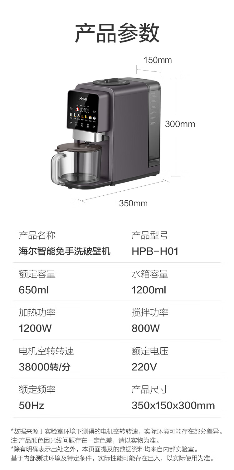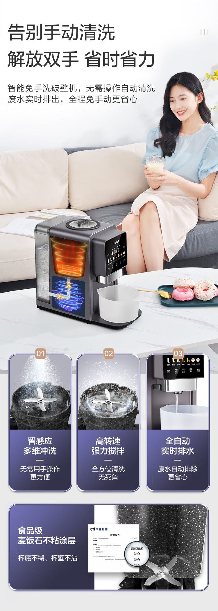 海尔家用全自动自清洁免手洗静音多功能智能预约全息彩屏破壁机 HPB-H01