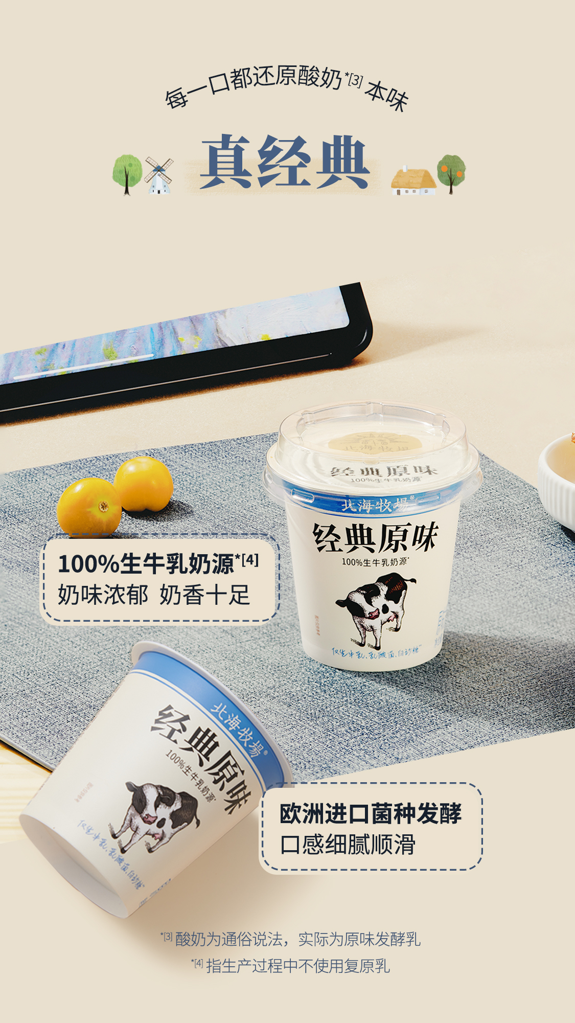 【直供】北海牧场经典小白杯原味发酵乳 低温酸奶100g*15杯