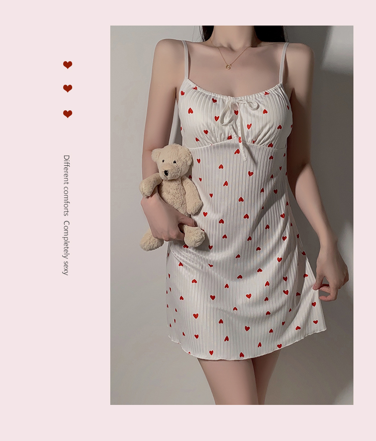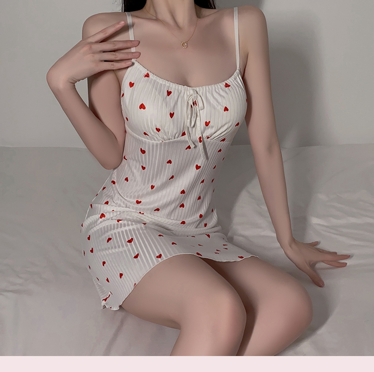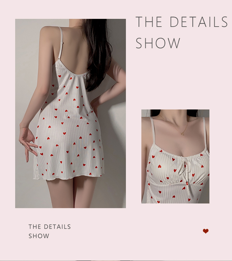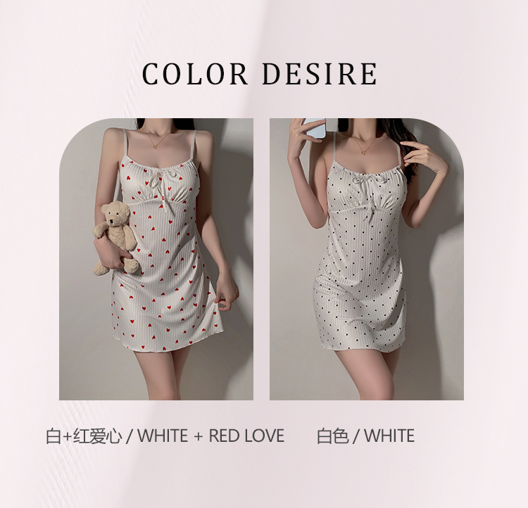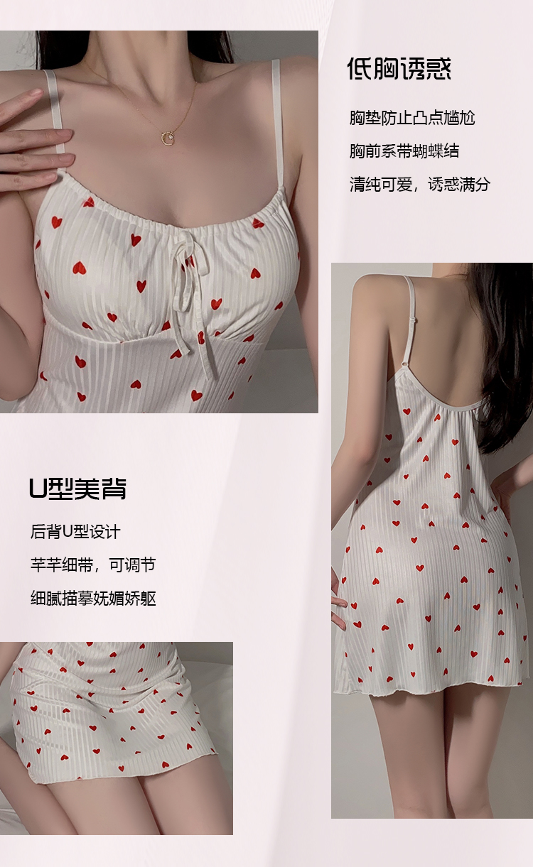 【YW】无忧购纯欲诱惑印花性感吊带睡裙/深V聚拢加胸垫睡衣5025(截单后7天发货)