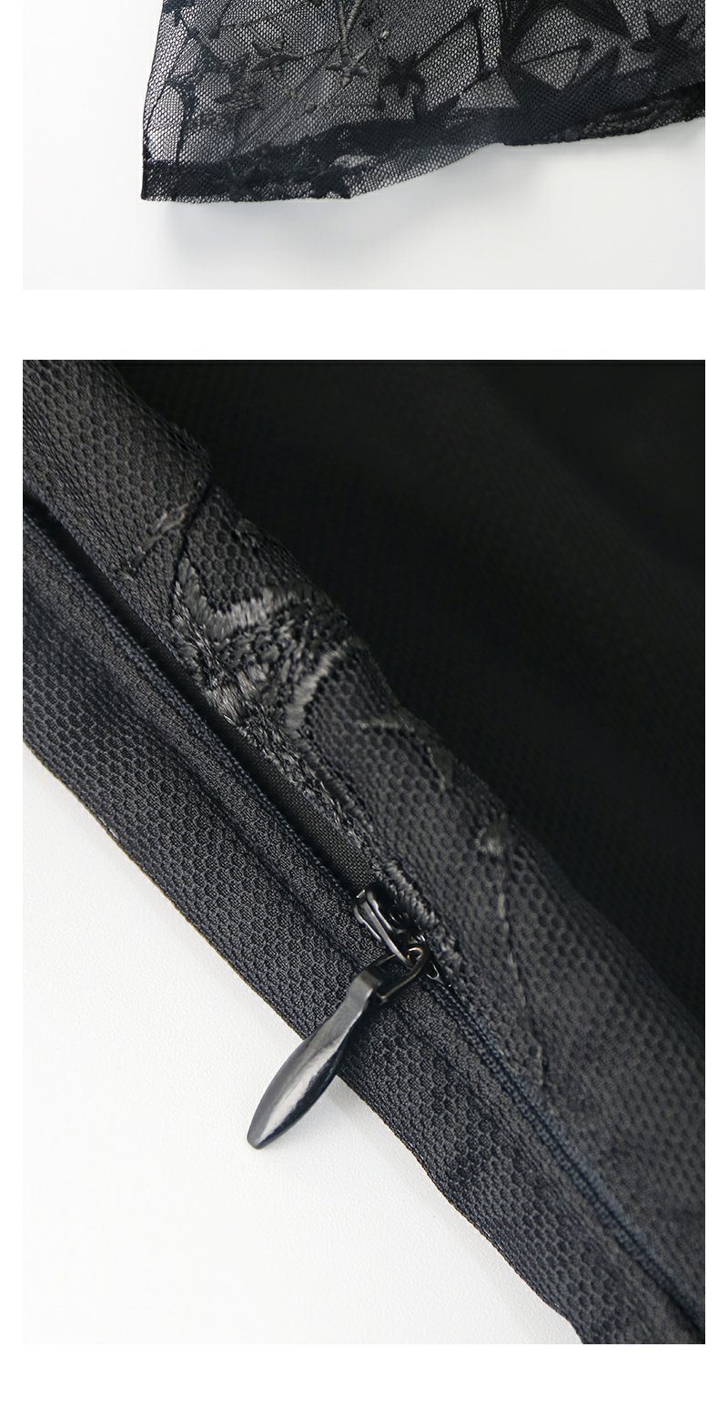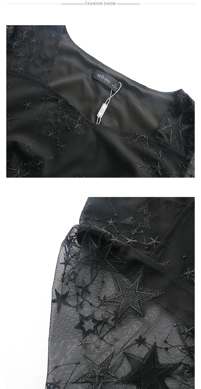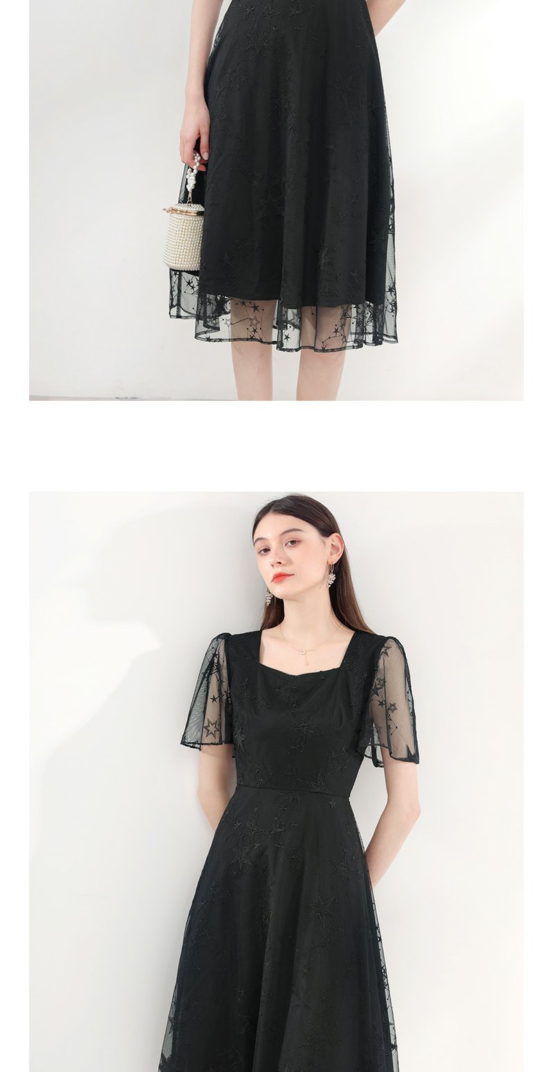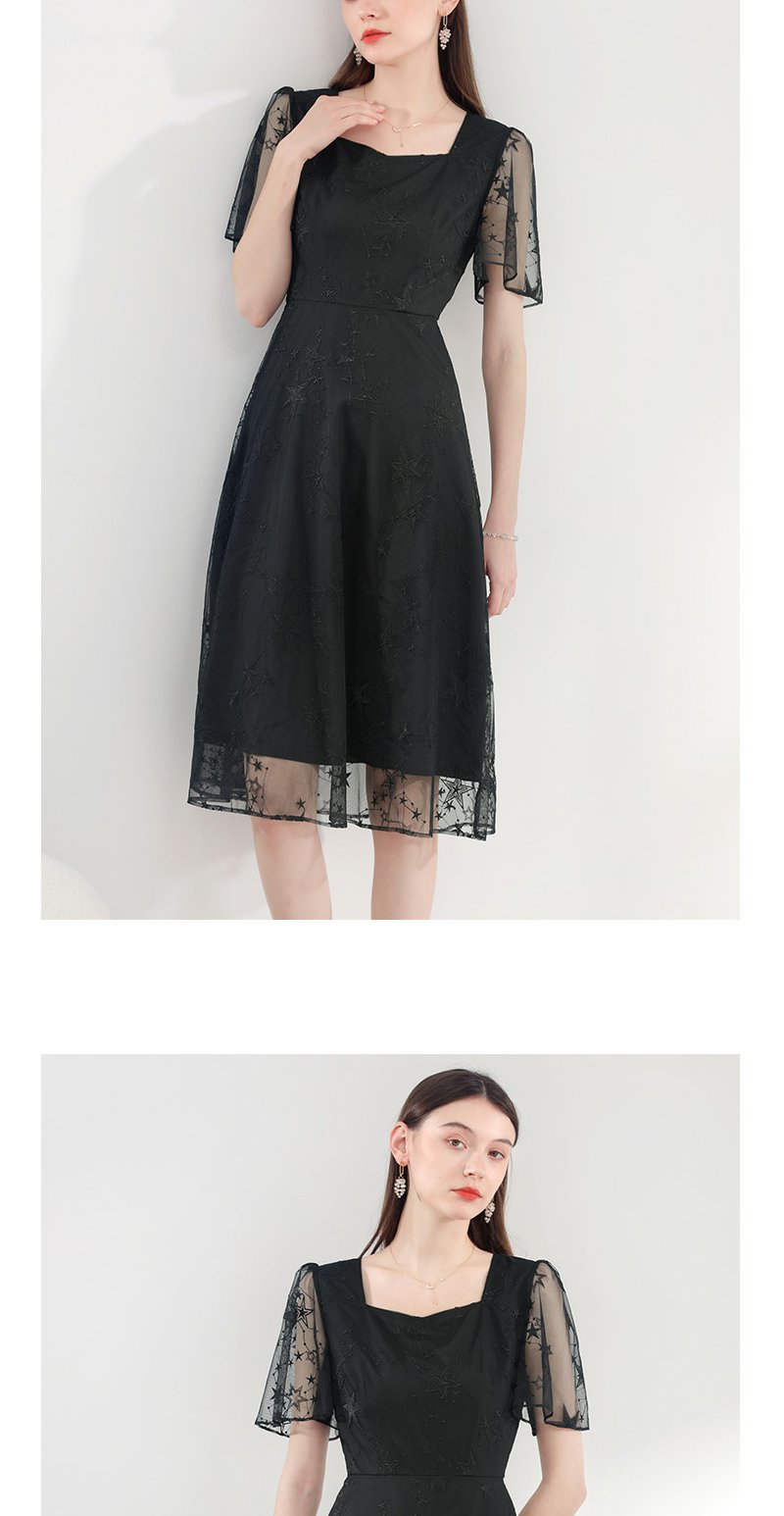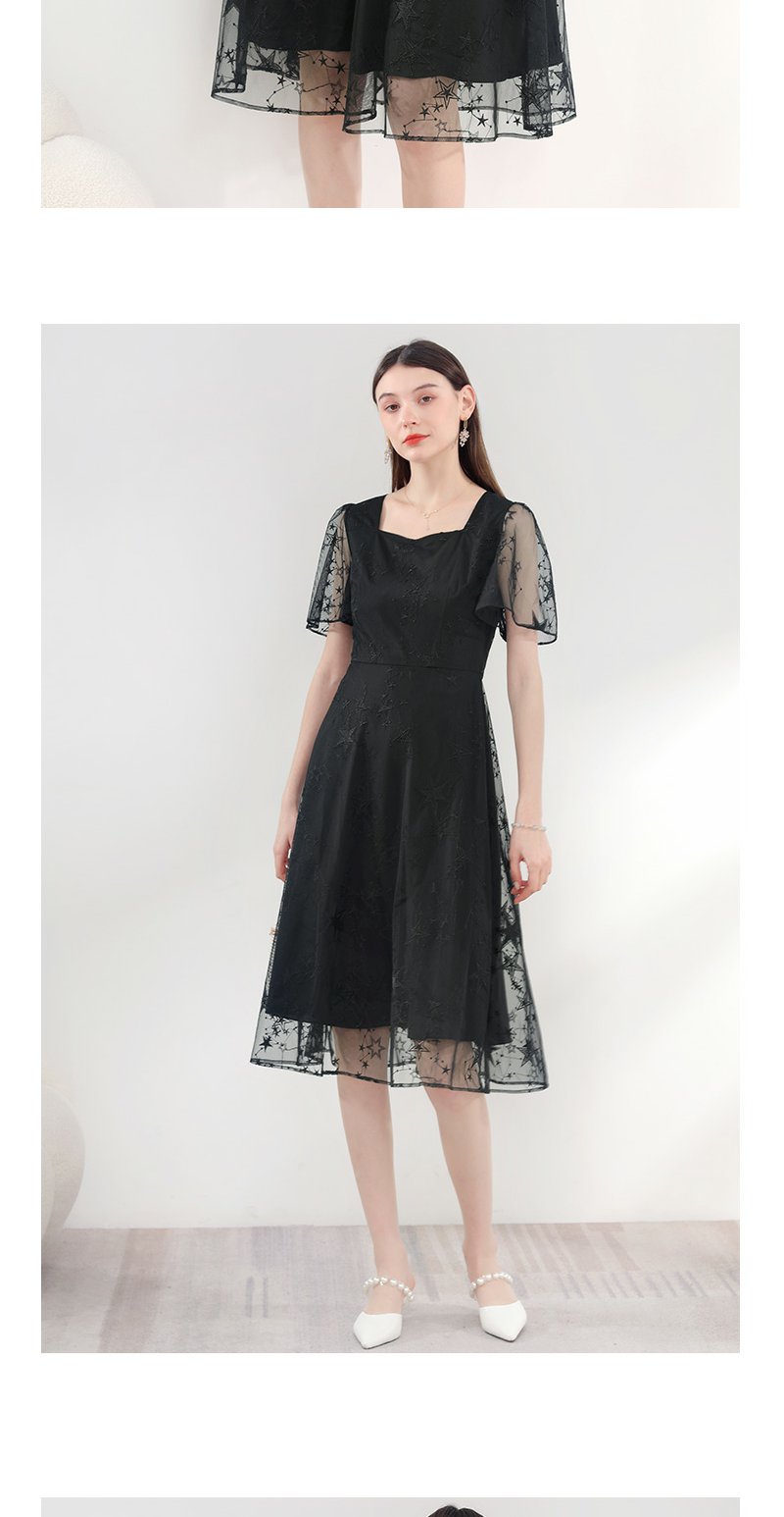 未风黑色网纱绣花连衣裙女夏2024年夏季新款女装气质高腰显瘦裙子
