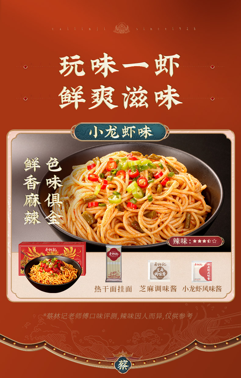 【特产劵199-100】蔡林记5人份盒装小龙虾味热干面675g