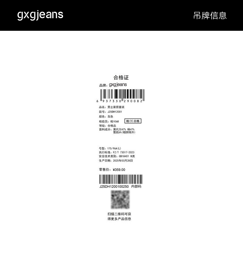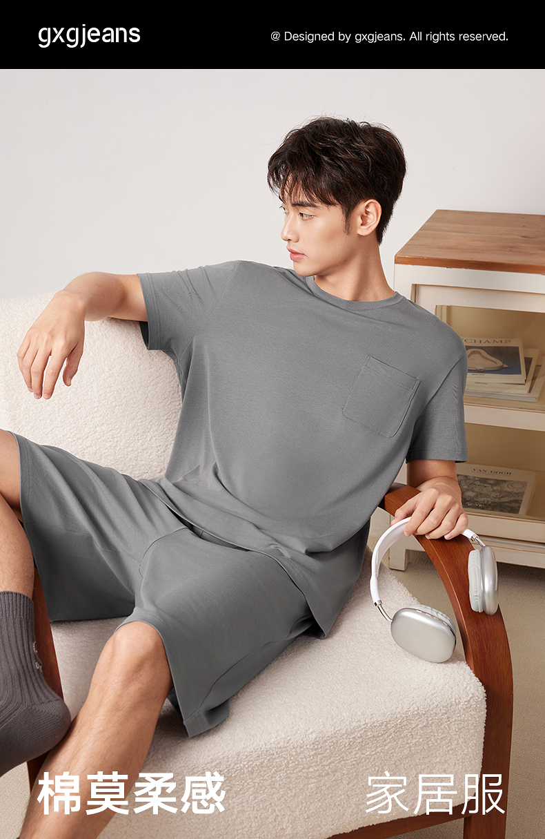 gxg.jeans男装 多色宽松莫代尔棉家居服短袖睡衣套装男 25夏热卖