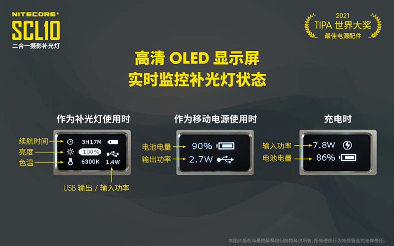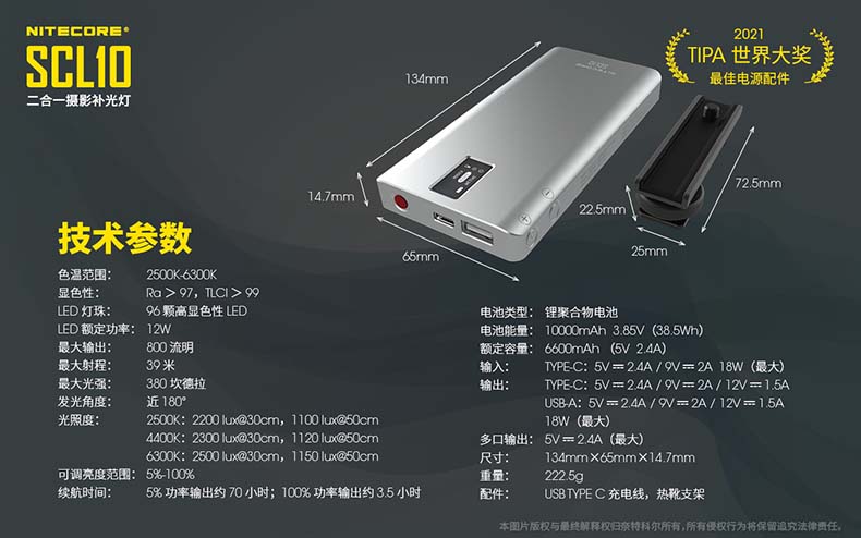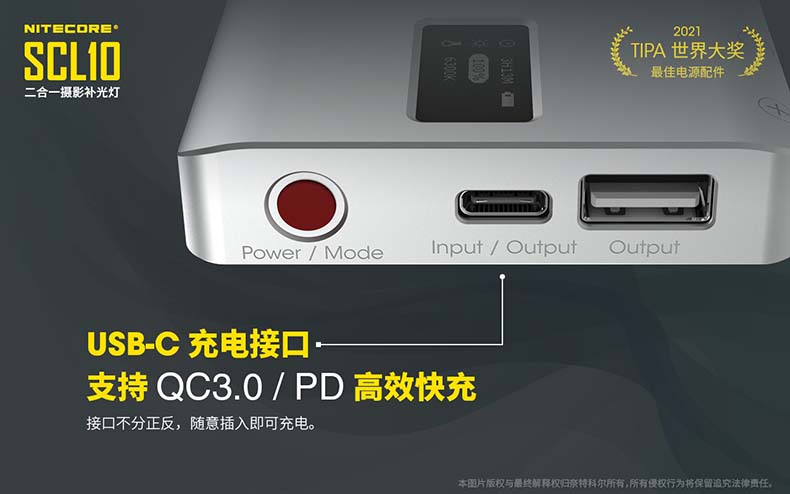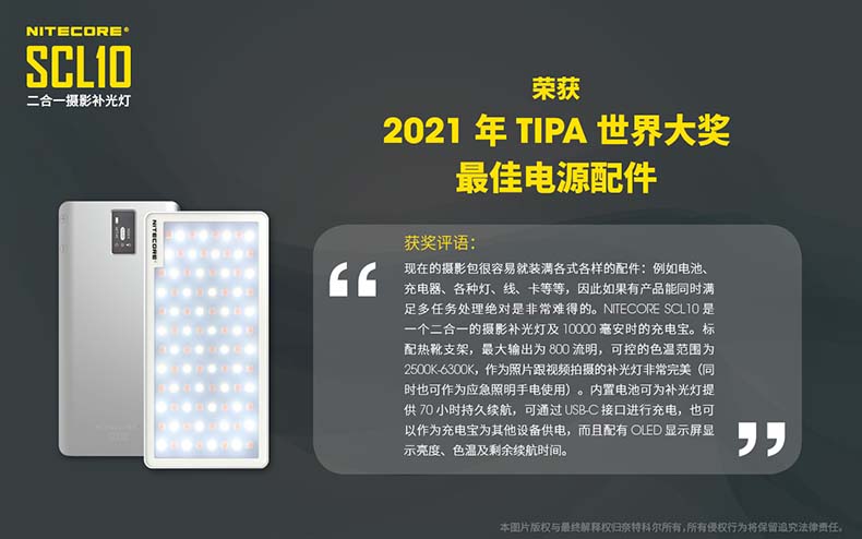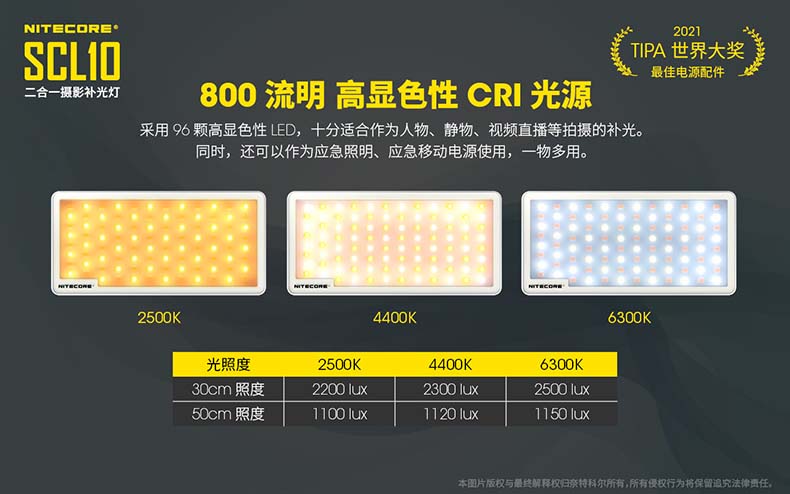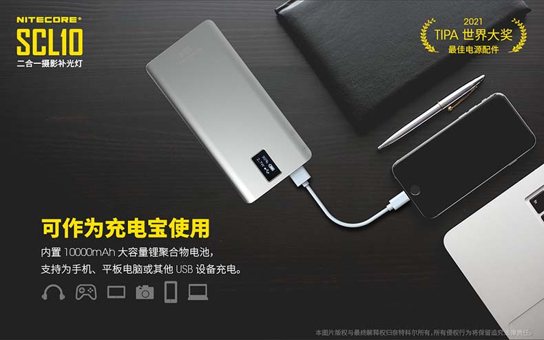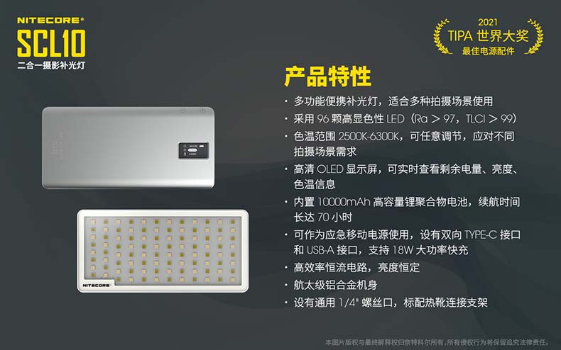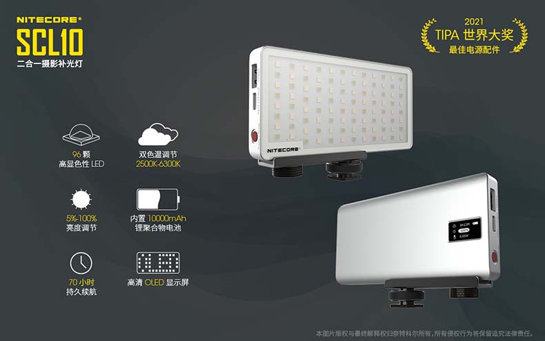 NITECORE奈特科尔SCL10充电照明多功能二合一摄影补光灯场地灯