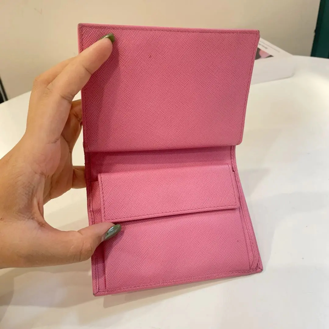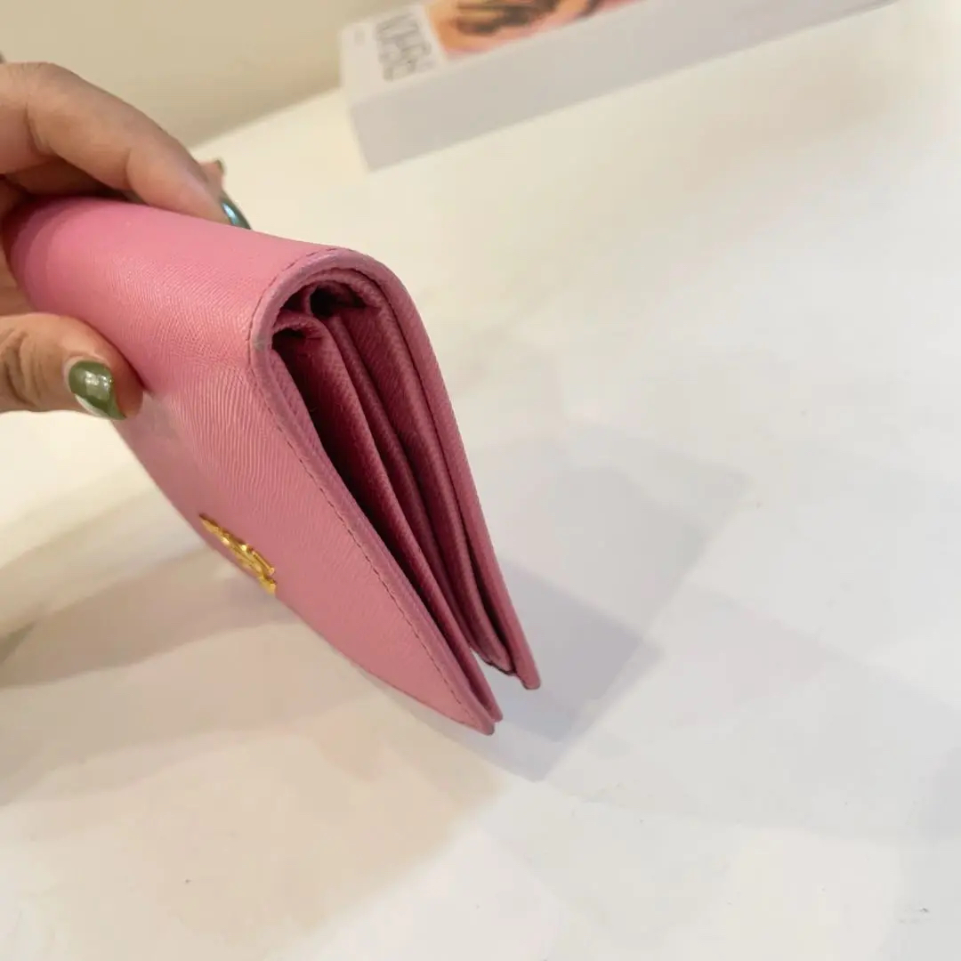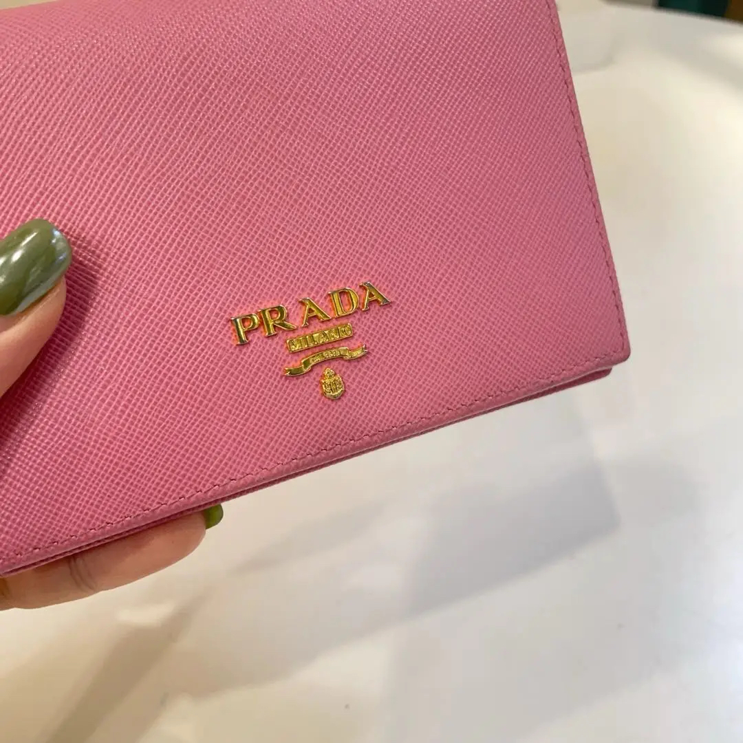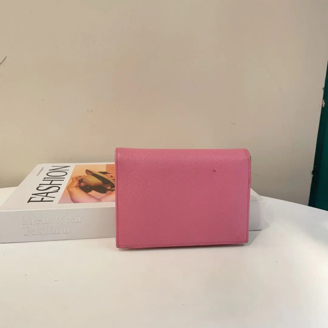 【商品详情】正品二手 Prada 樱花粉 短款 十字纹牛皮 钱包💼93新 13*10。边角和金属正常使用感。少女感十足