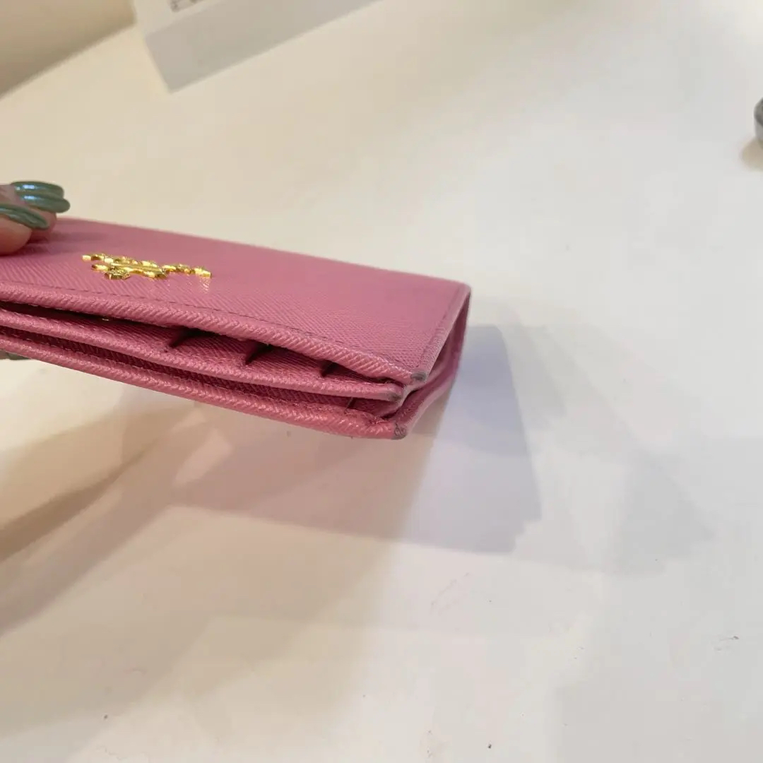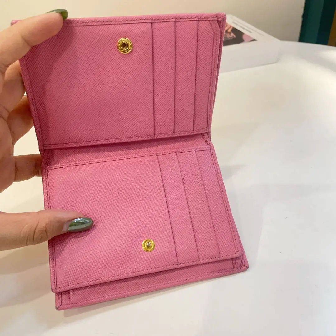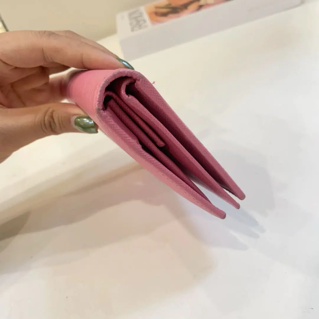 【商品详情】正品二手 Prada 樱花粉 短款 十字纹牛皮 钱包💼93新 13*10。边角和金属正常使用感。少女感十足