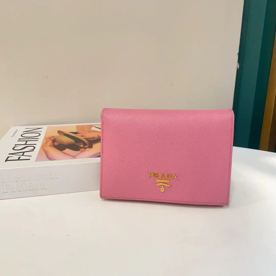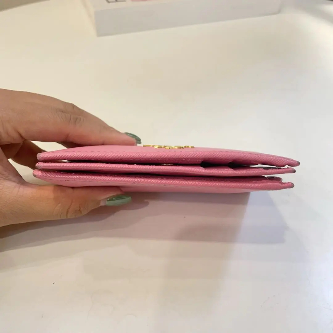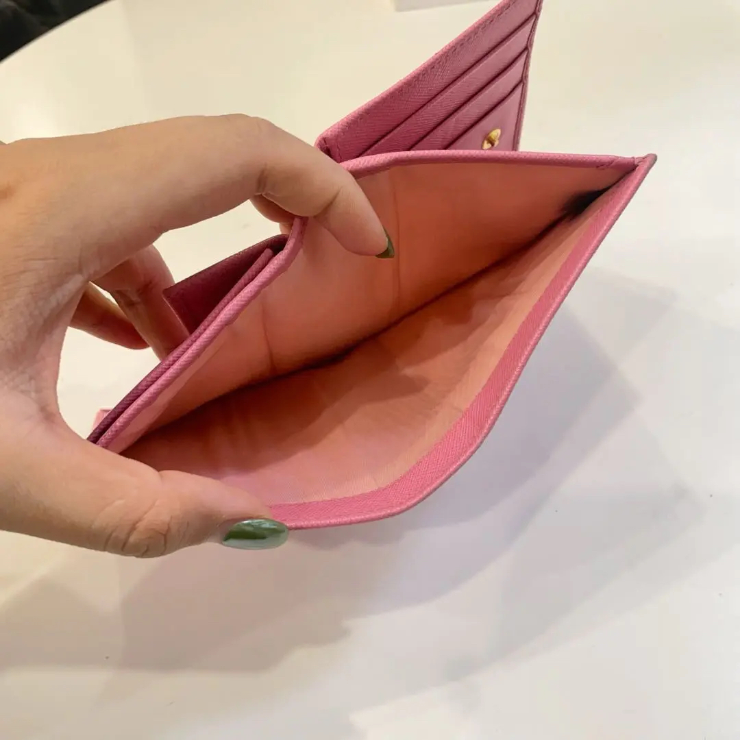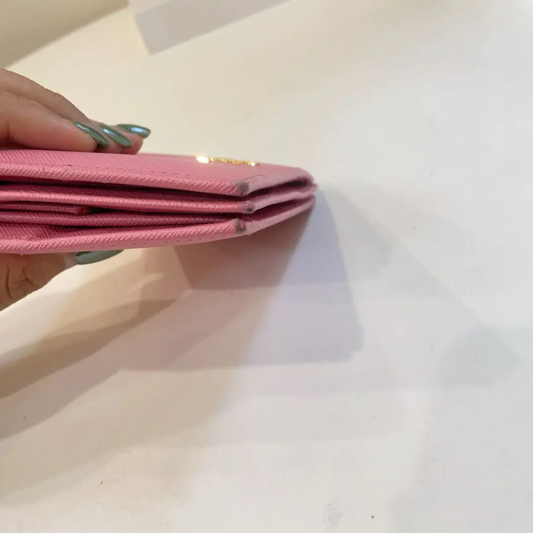 【商品详情】正品二手 Prada 樱花粉 短款 十字纹牛皮 钱包💼93新 13*10。边角和金属正常使用感。少女感十足