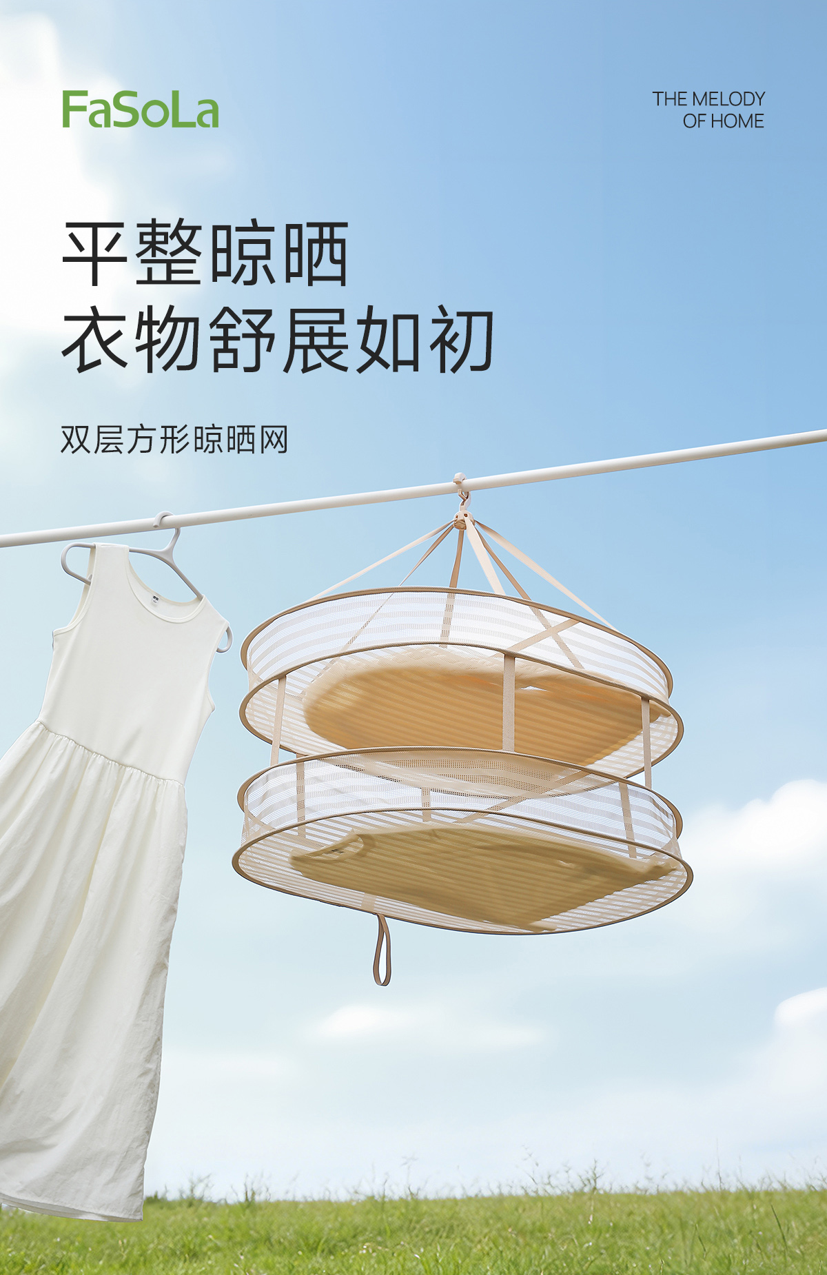 FaSoLa涤纶晾晒网平铺晒衣架内衣晾晒网兜晒袜子神器双层方形晾晒网