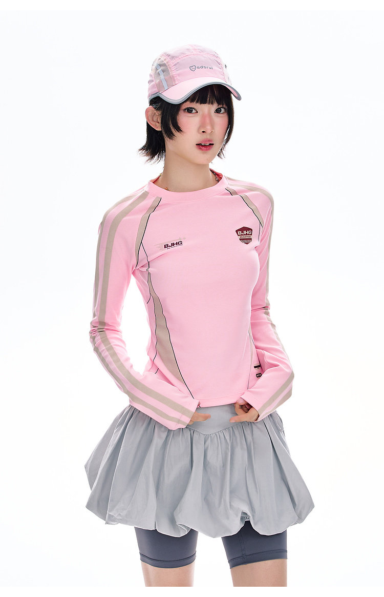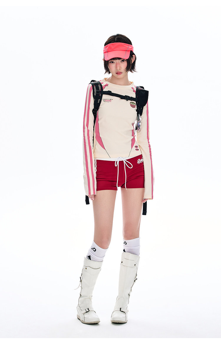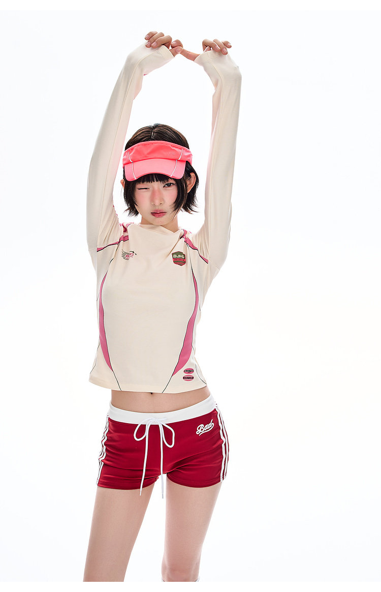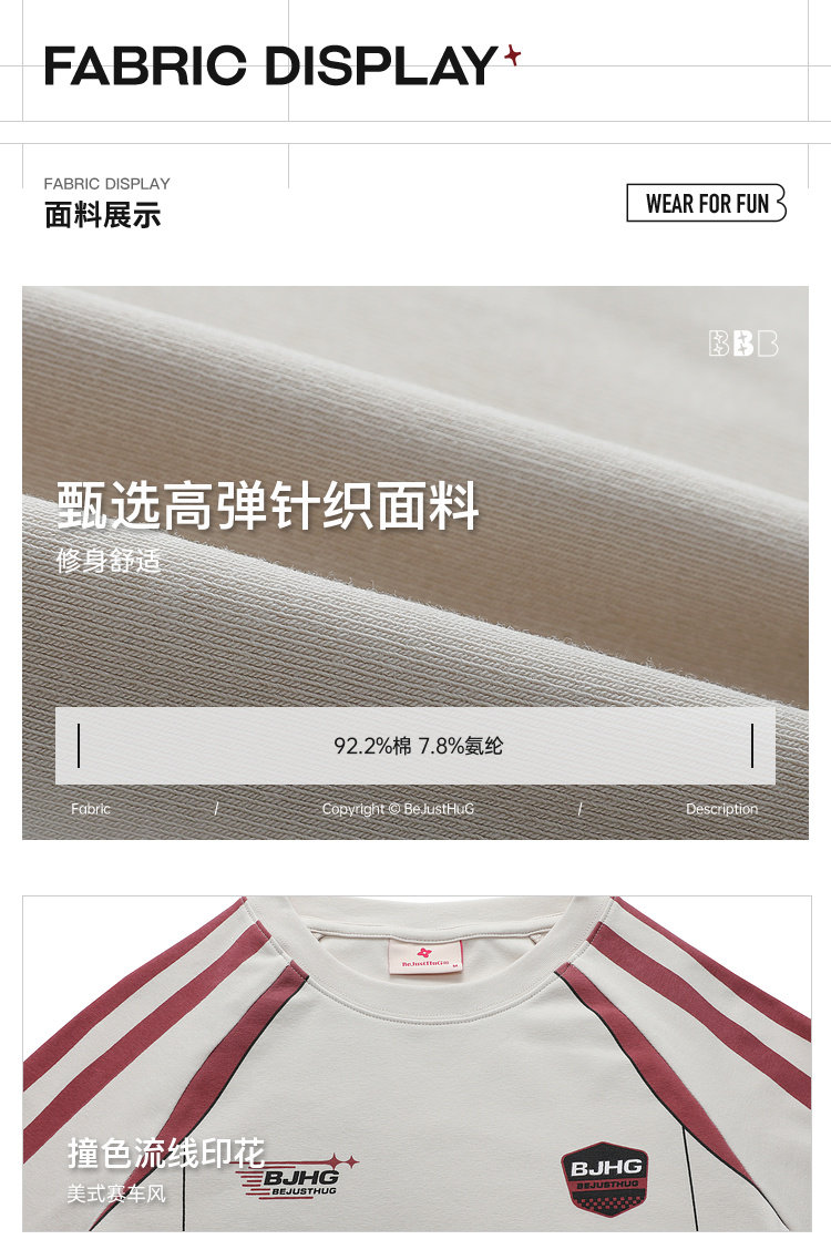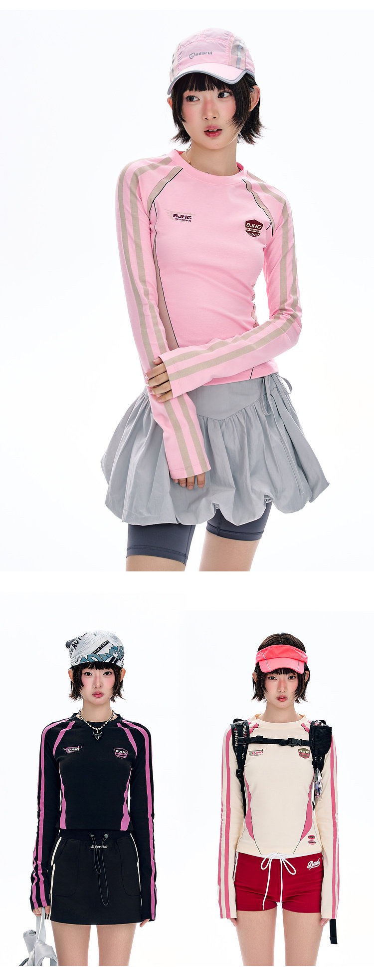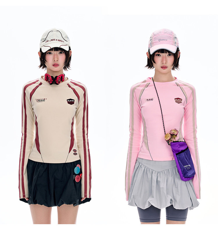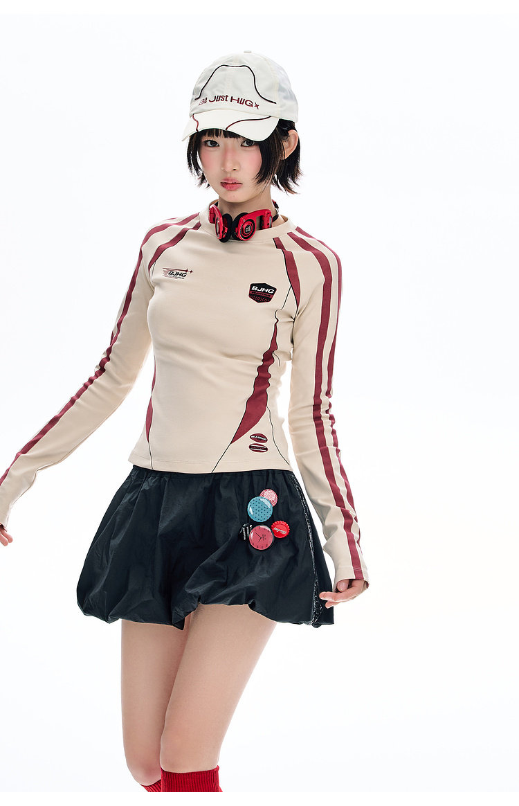 BJHG不计后果赛车风长袖T恤女款春季 印花撞色短款修身打底衫内搭