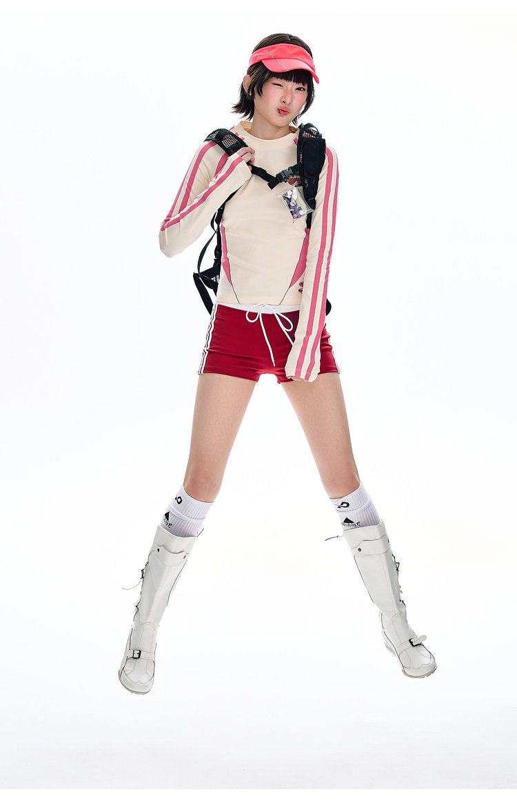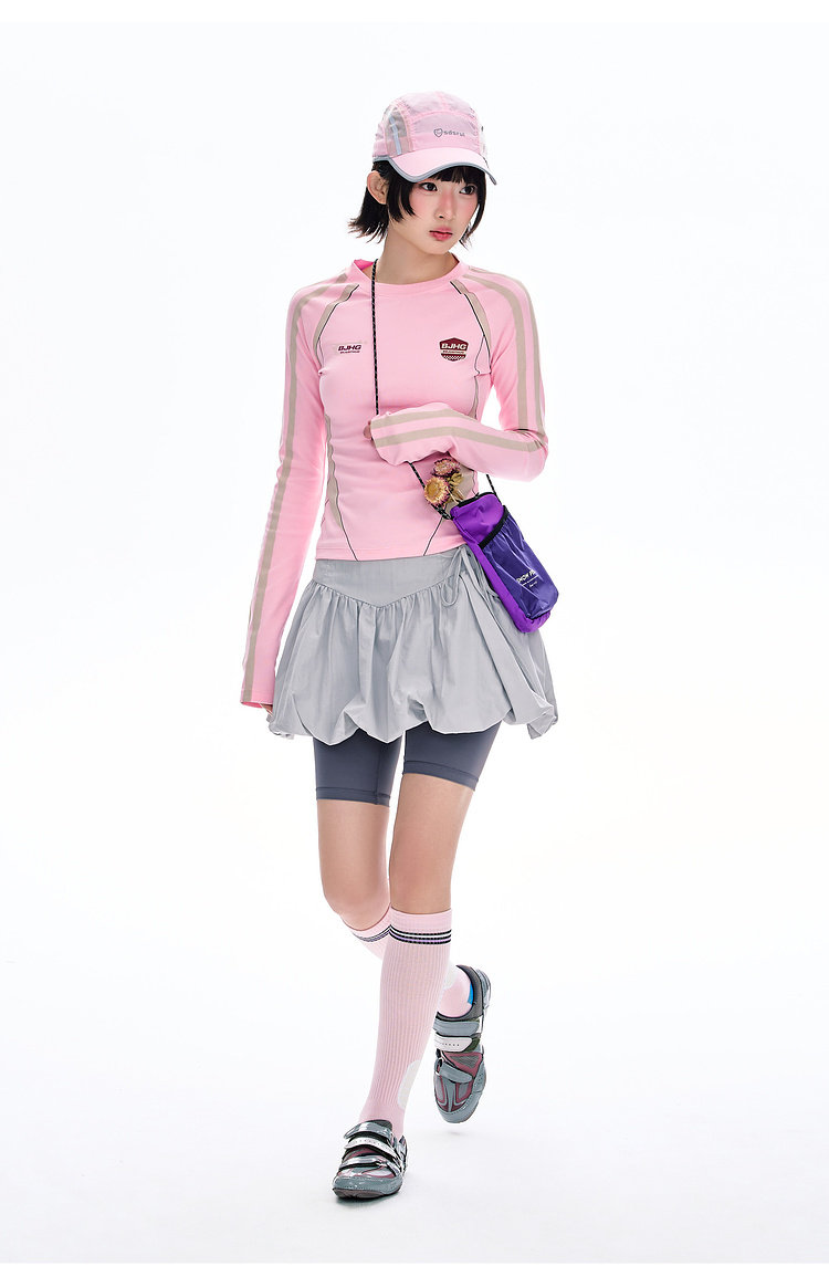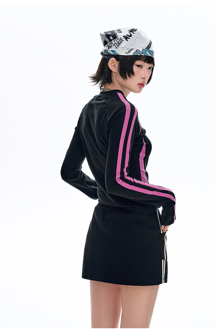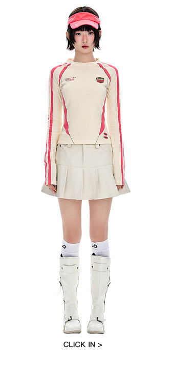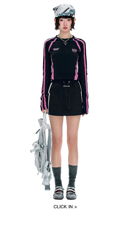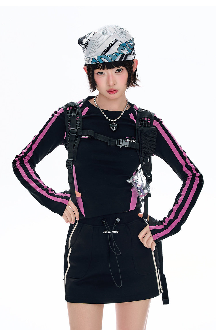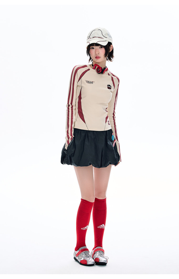 BJHG不计后果赛车风长袖T恤女款春季 印花撞色短款修身打底衫内搭