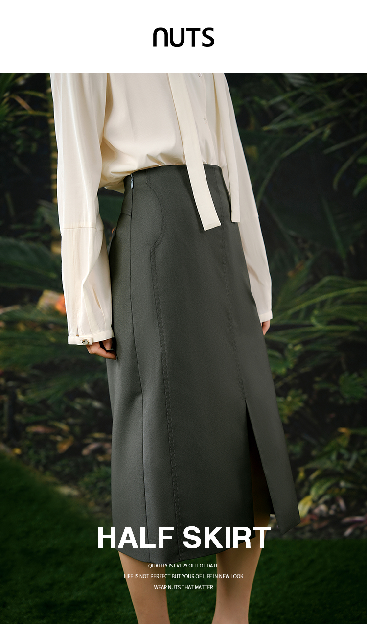 NUTS商场同款春秋季复古高腰气质直筒显瘦西装半身裙女413061087