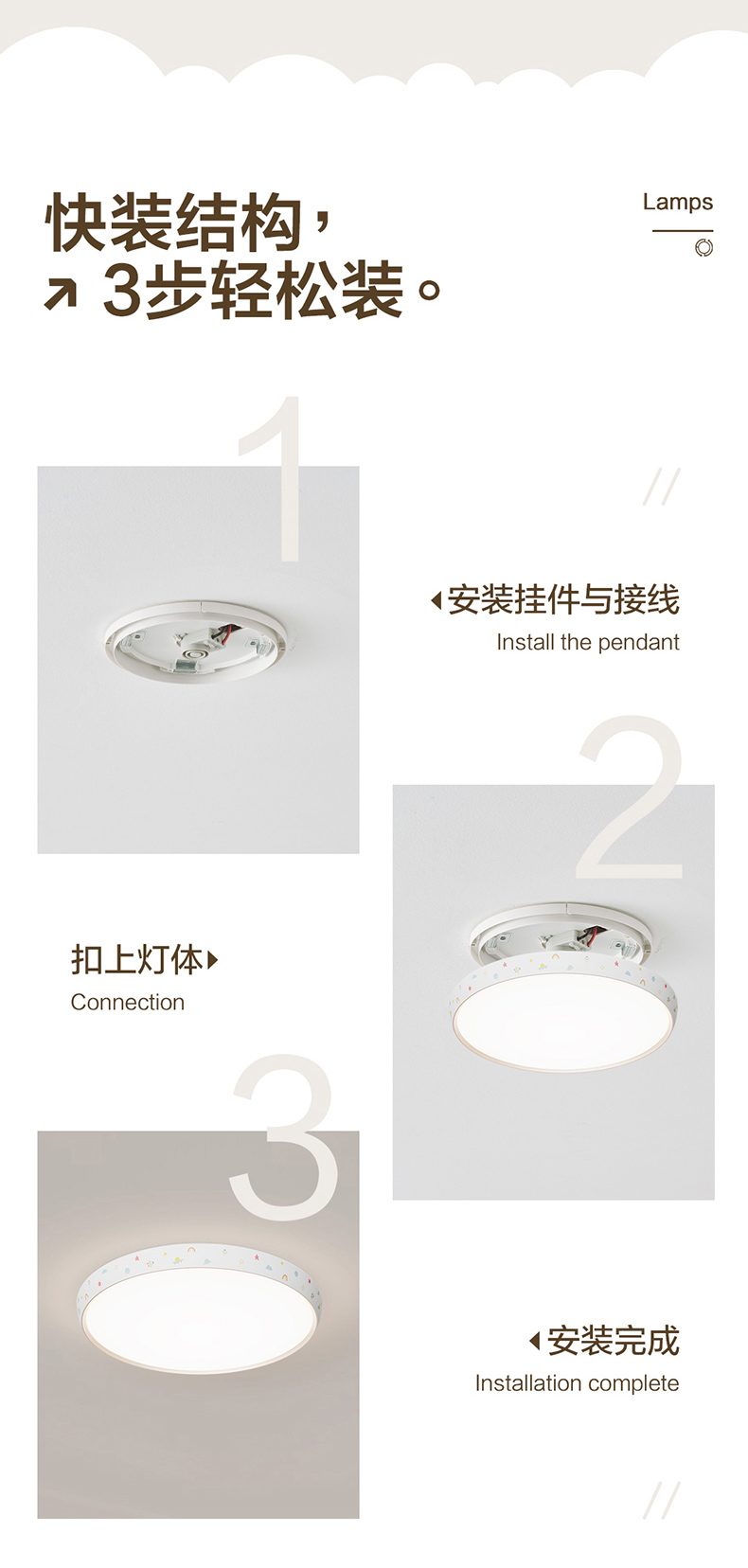 欧普(OPPLE)甜宇卧室奶油风圆形儿童房吸顶灯