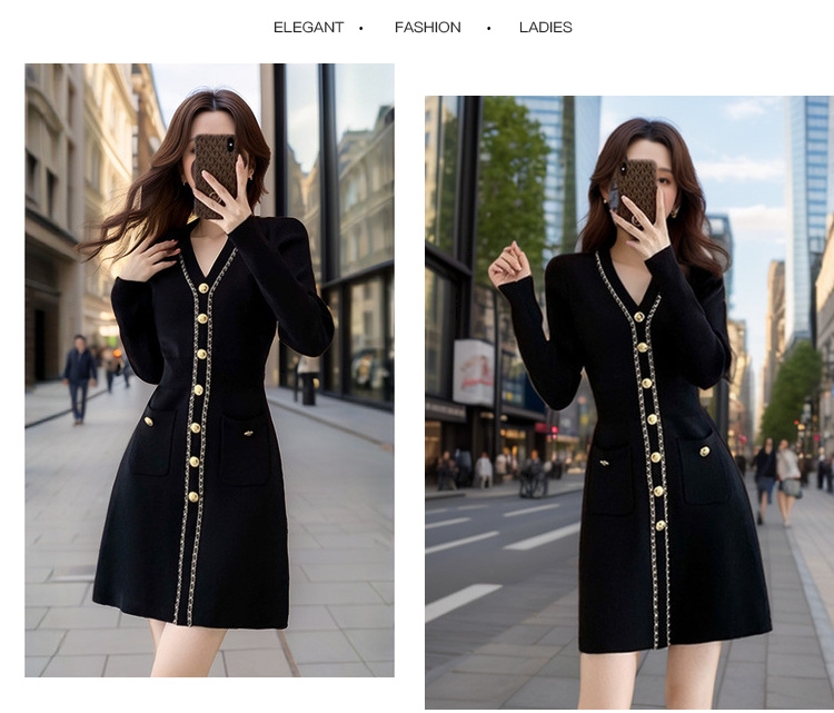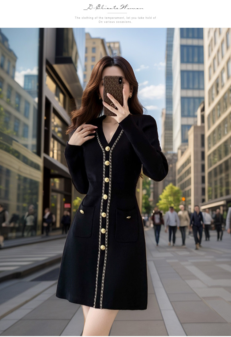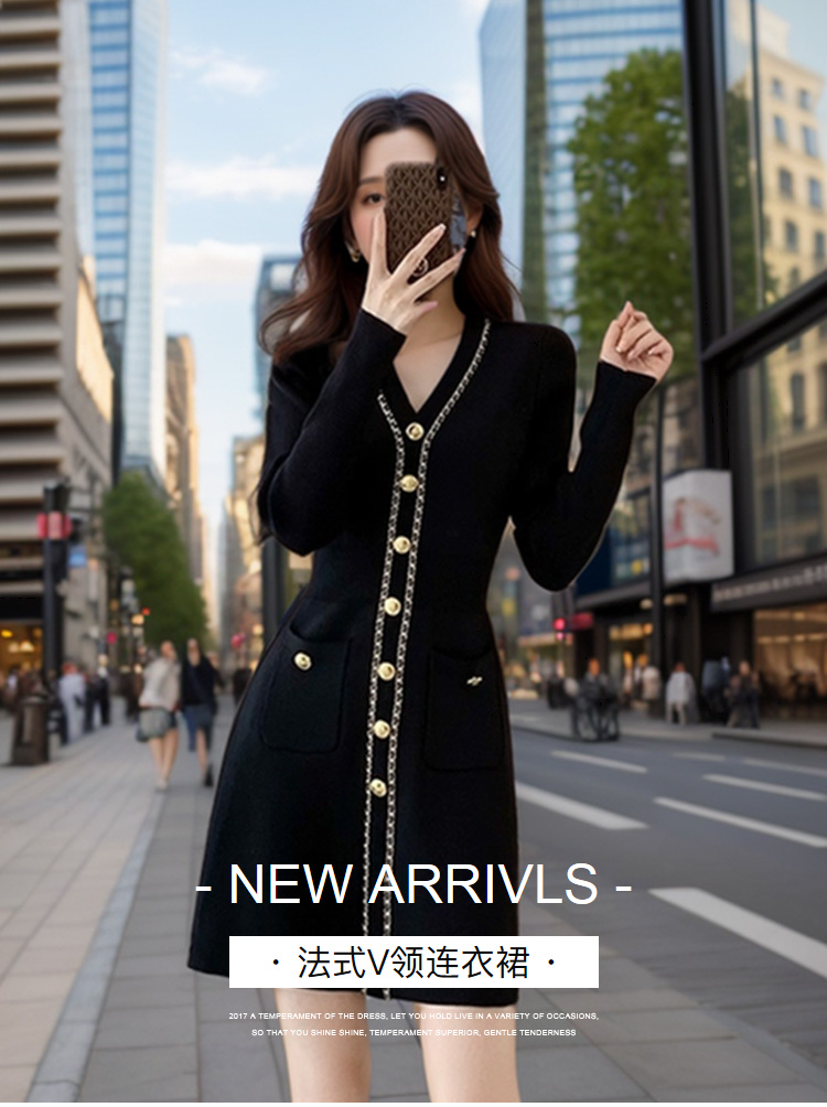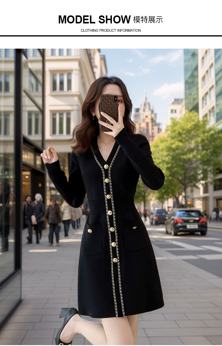 奢姿2024年冬季新款大码女装法式拼接裙子胖妹妹V领针织连衣裙9844827653