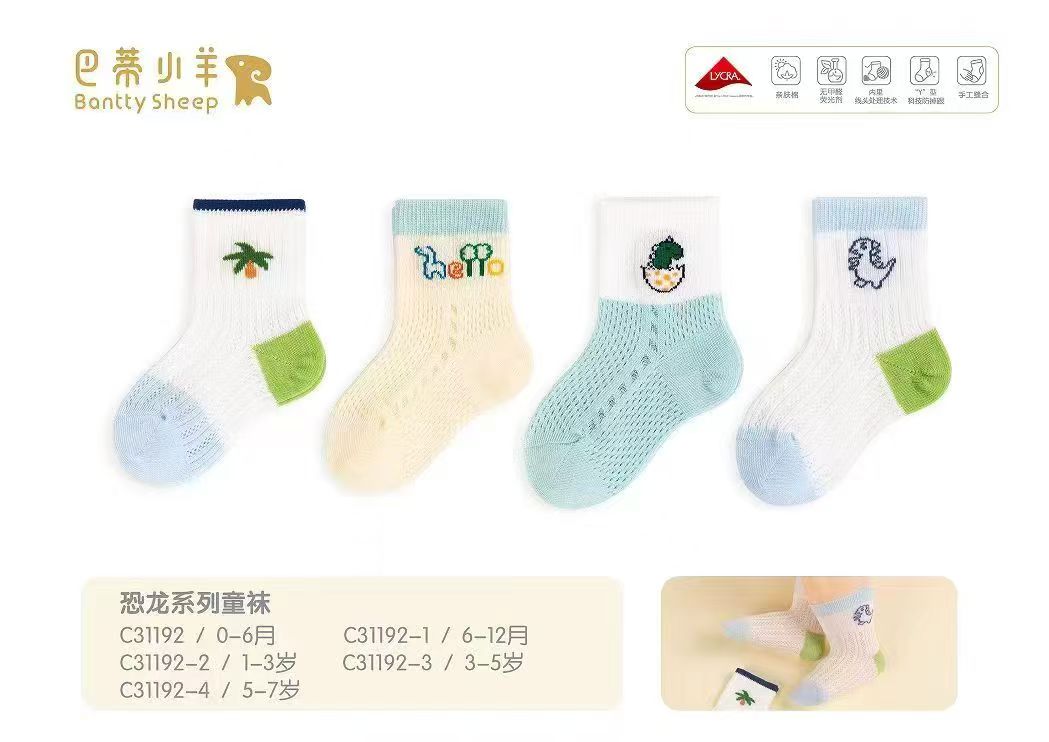巴蒂小羊2-25配饰恐龙系列童袜3-5岁BDX-C31192-3