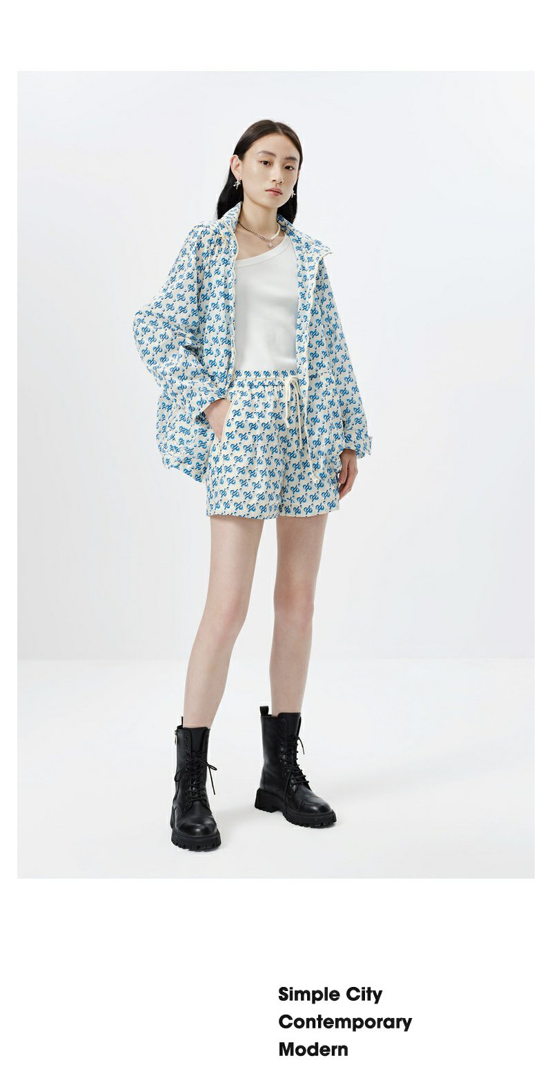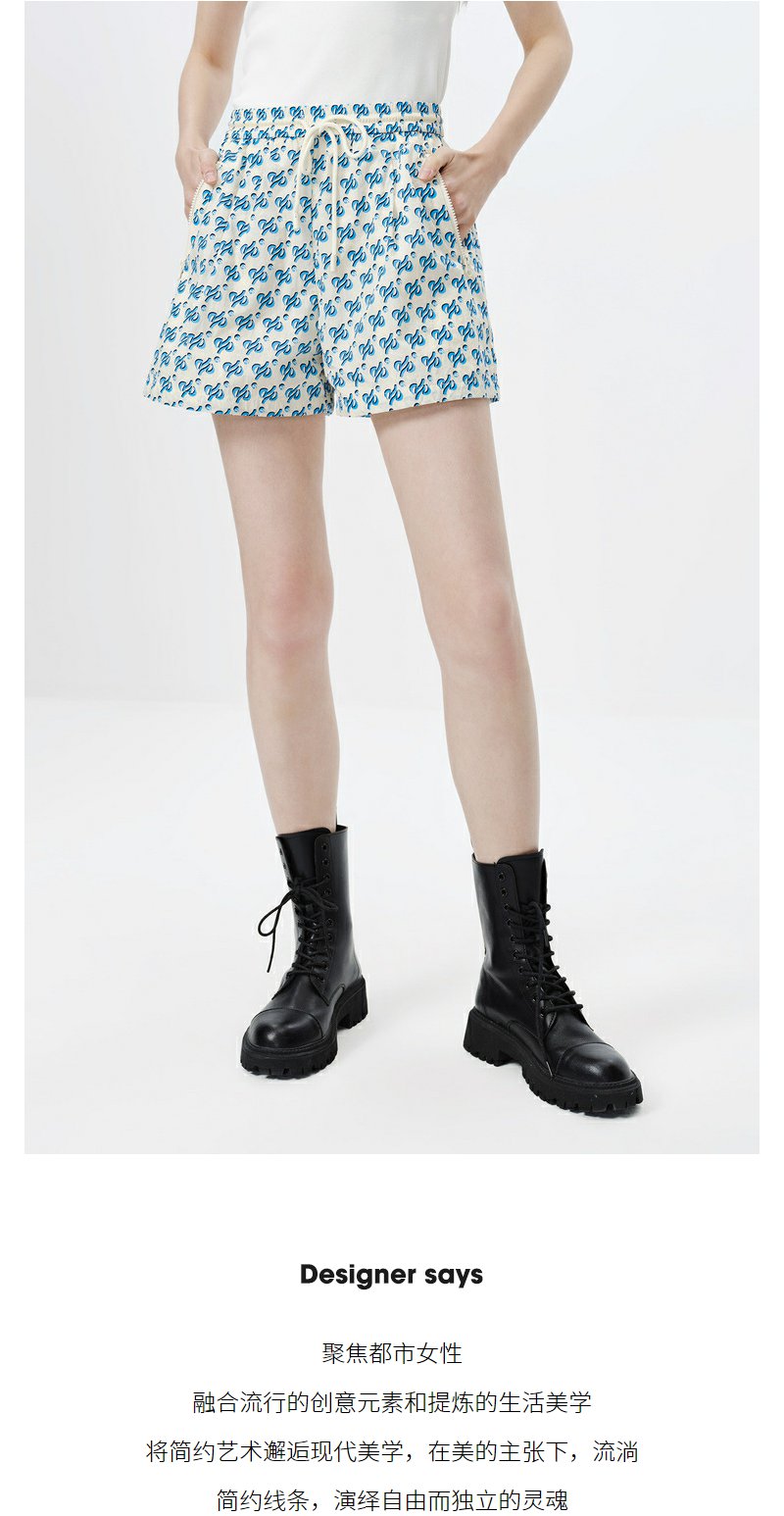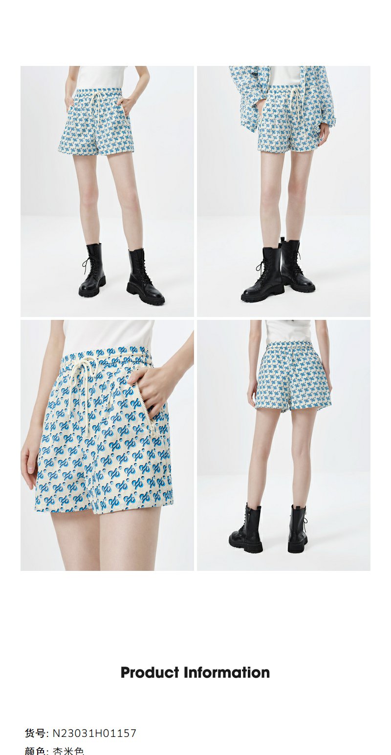 NEELLY纳俪商场同款系带字母印花短裤女阔腿直筒显瘦休闲裤百搭N23031H01157