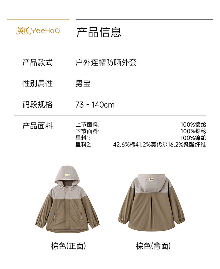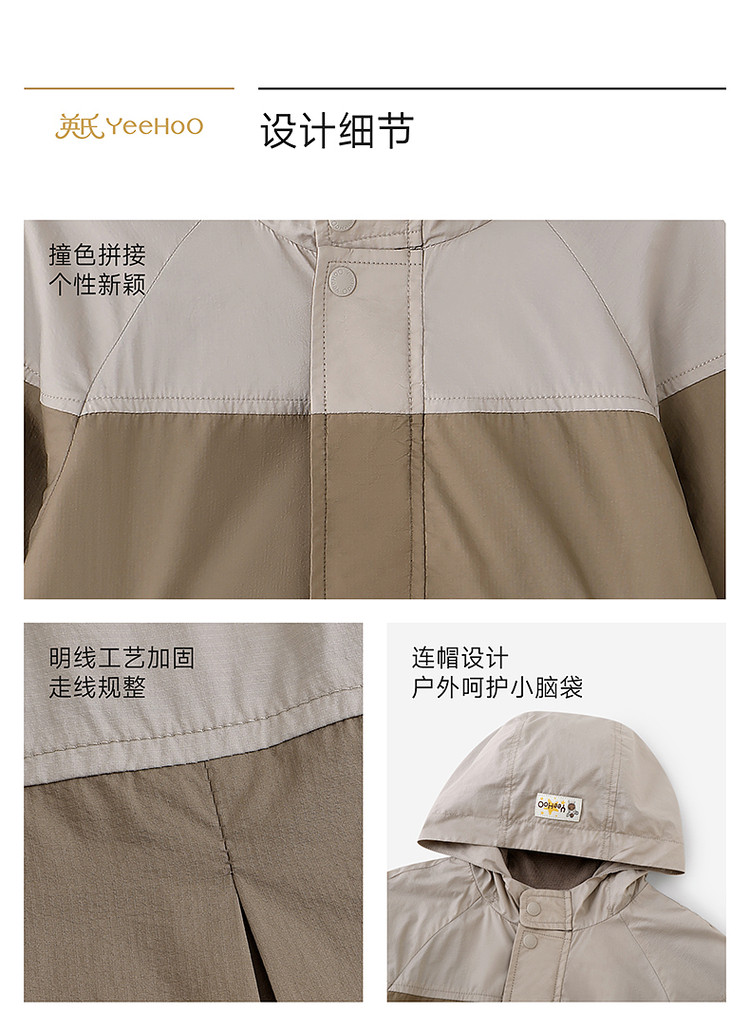 英氏儿童防晒衣男童连帽防晒衣春秋户外休闲皮肤衣YRWVJ1S006A