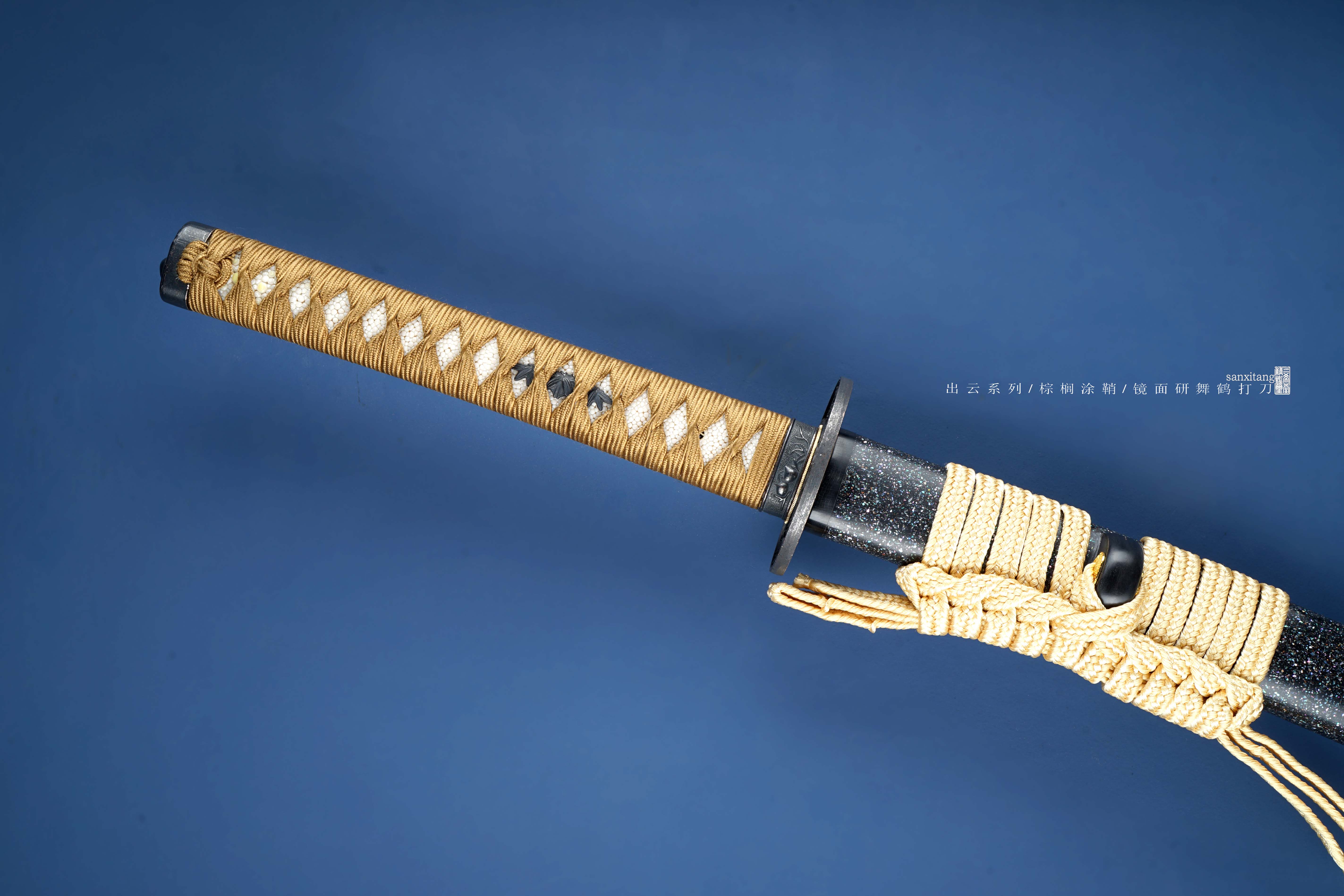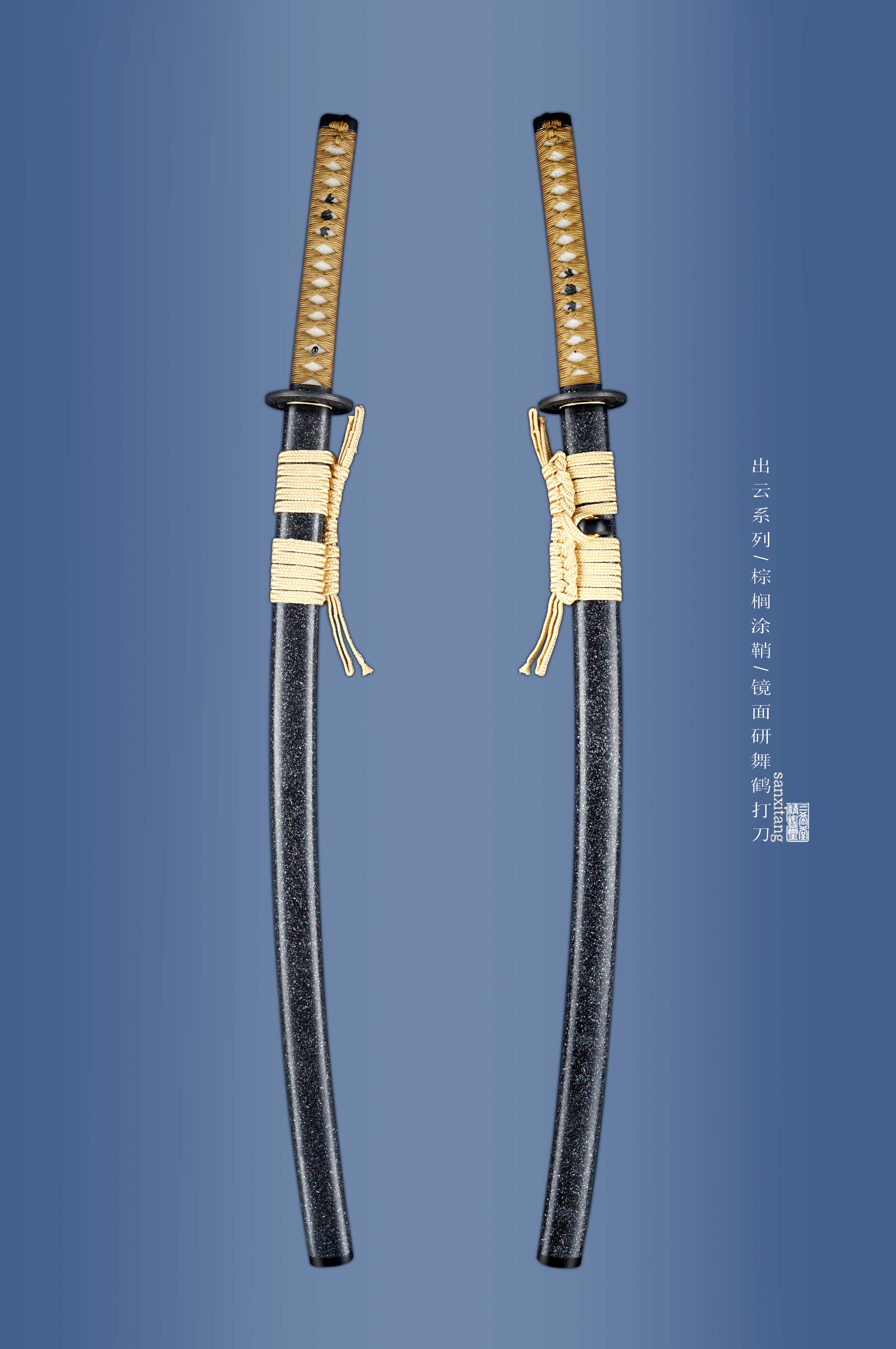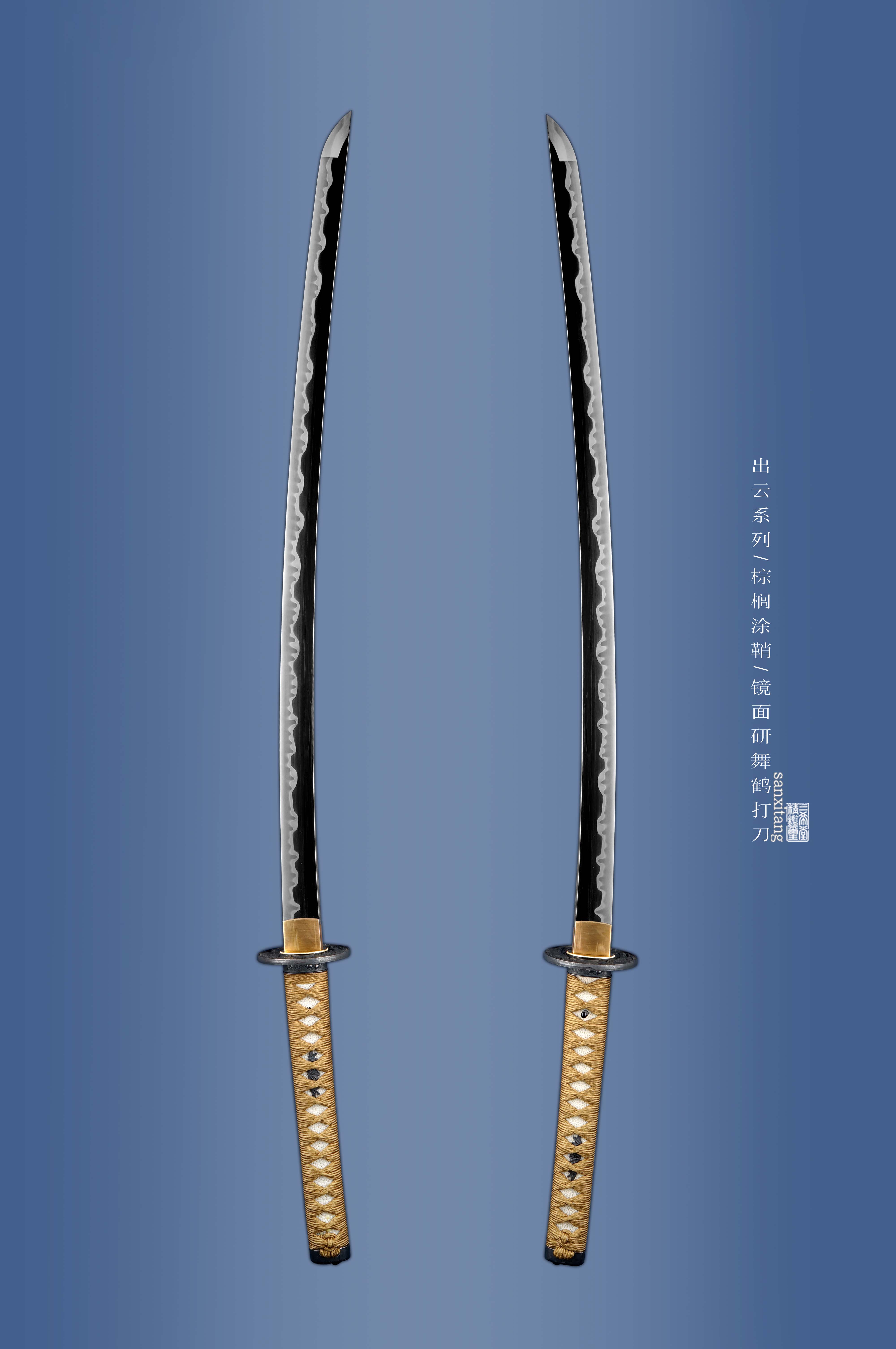 主打日本刀系列终于出来了 我们非常用心的一个系列作品 自己锻打的8000余层高碳钢 传统方法覆土烧刃 刀的弧度是淬火的时候自然形成的 手工用各种磨刀石一道一道磨出来的 点线面清晰分明 线条挺拔立体 我们核心的镜面研工艺 表面柔顺细腻 定做尺寸的鞘 和刀条匹配 镶天然牛角还原日式味道 这一步的成本能买一把入门级别的刀了 日本进口真丝柄卷+大颗粒珍珠鱼皮 按日本传统方法手工缠绳 缠一只柄要几个小时 非常紧防滑性能很好 质感相当不错 日本天然金梨子地大漆鞘 档次高 这只作品可以说是现代美学和传统工艺的完美结合 我自己很满意的一把好刀 非常感谢各位支持 这只作品大家自己玩或者送礼都相当合适!!
