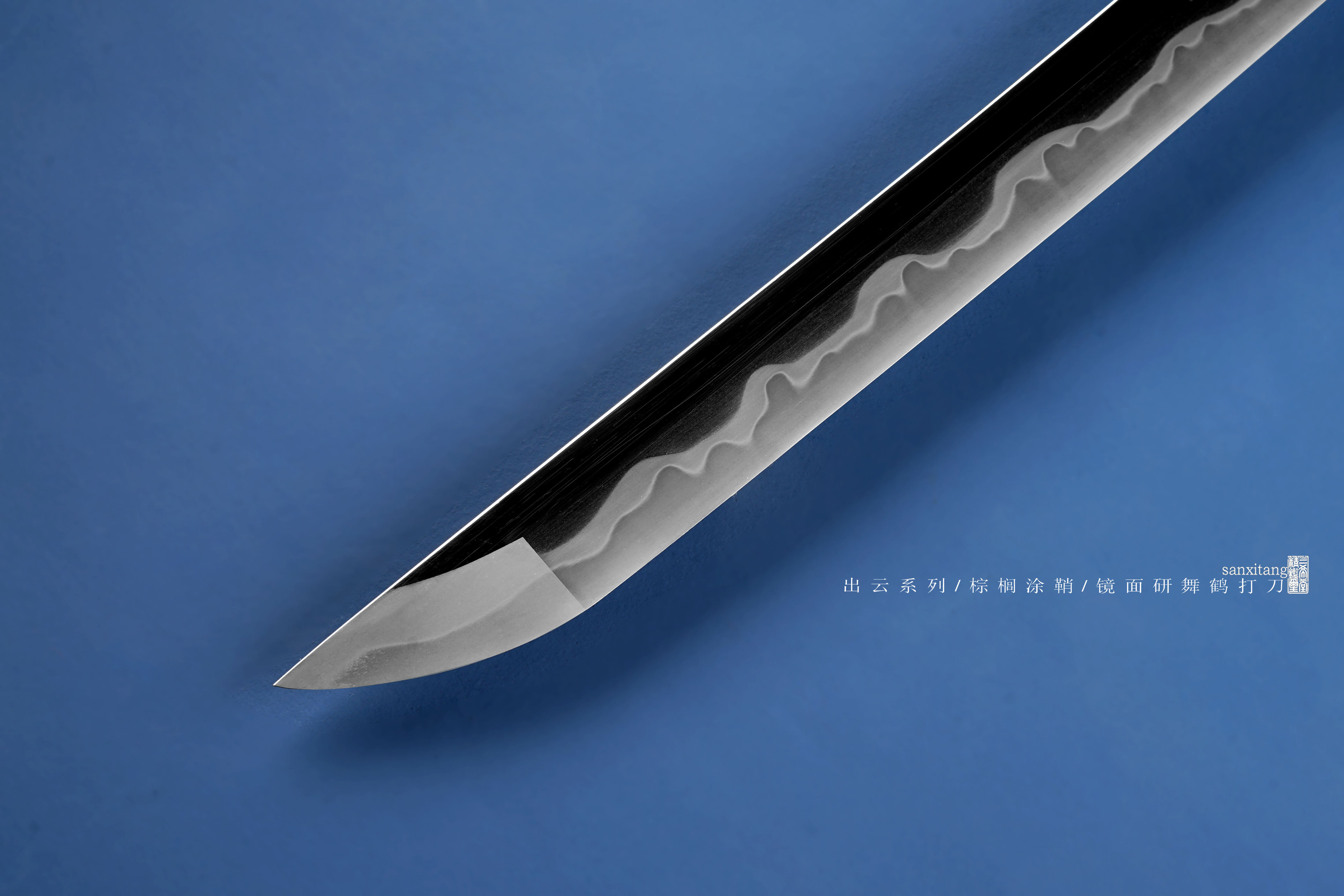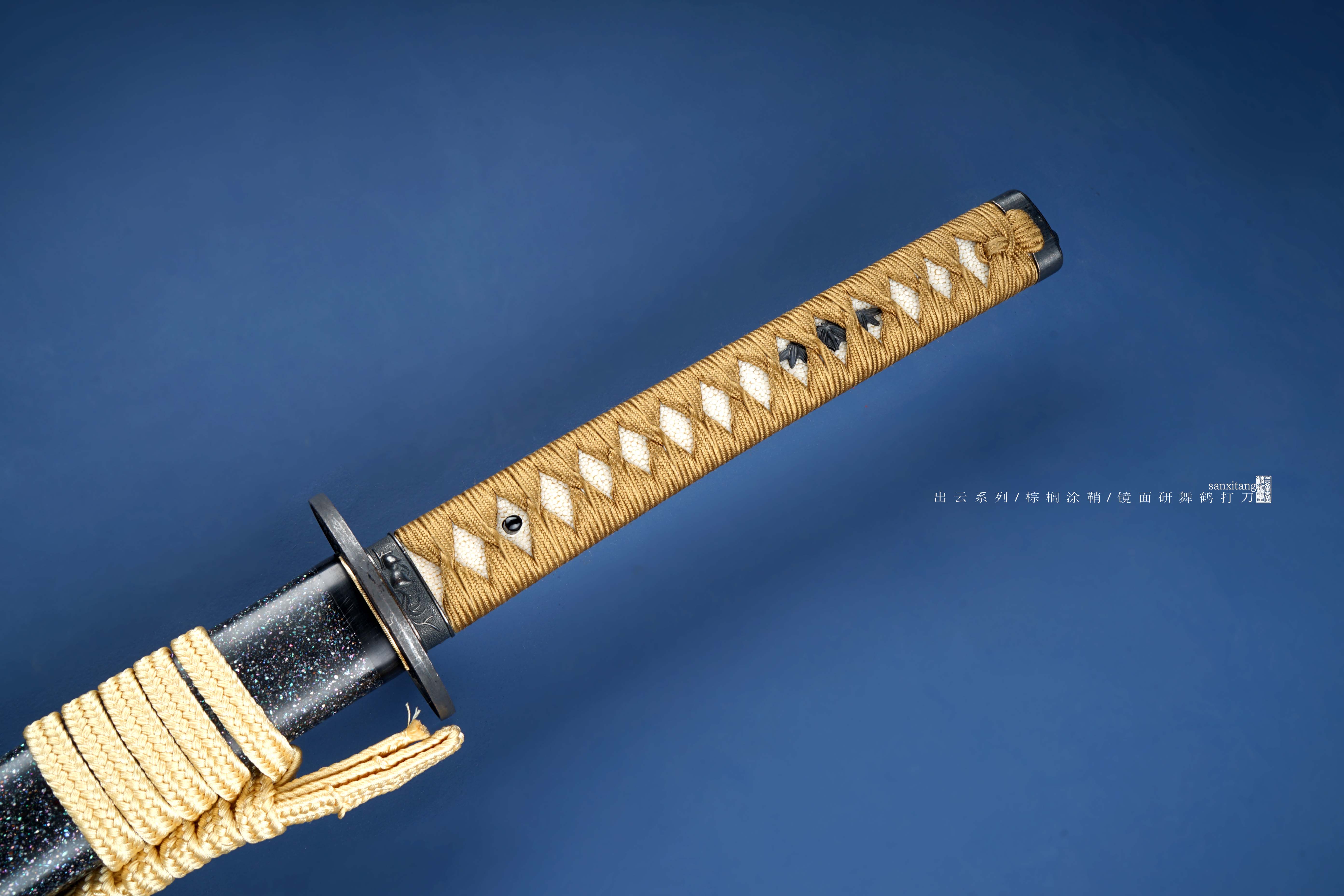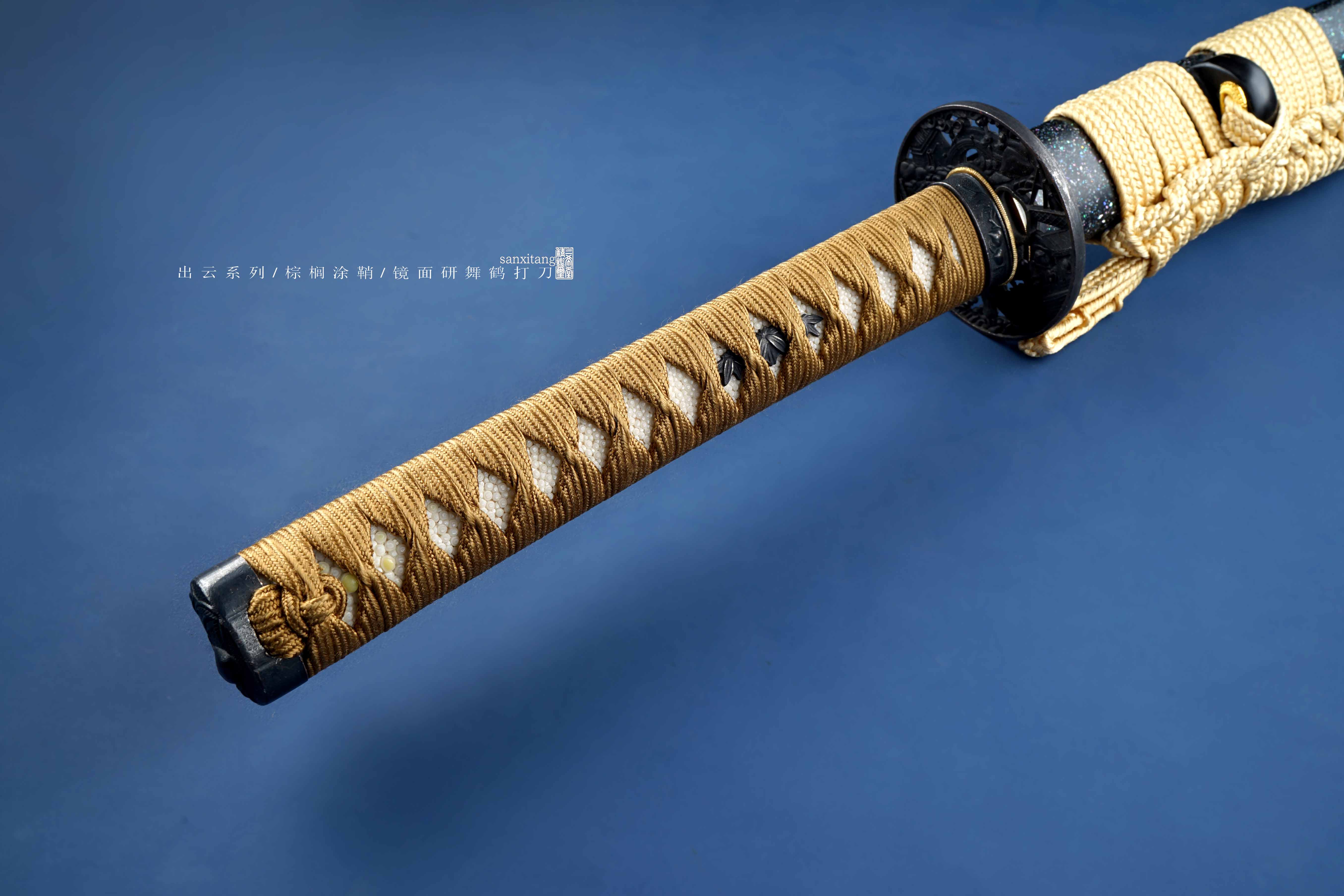 主打日本刀系列终于出来了 我们非常用心的一个系列作品 自己锻打的8000余层高碳钢 传统方法覆土烧刃 刀的弧度是淬火的时候自然形成的 手工用各种磨刀石一道一道磨出来的 点线面清晰分明 线条挺拔立体 我们核心的镜面研工艺 表面柔顺细腻 定做尺寸的鞘 和刀条匹配 镶天然牛角还原日式味道 这一步的成本能买一把入门级别的刀了 日本进口真丝柄卷+大颗粒珍珠鱼皮 按日本传统方法手工缠绳 缠一只柄要几个小时 非常紧防滑性能很好 质感相当不错 日本天然金梨子地大漆鞘 档次高 这只作品可以说是现代美学和传统工艺的完美结合 我自己很满意的一把好刀 非常感谢各位支持 这只作品大家自己玩或者送礼都相当合适!!