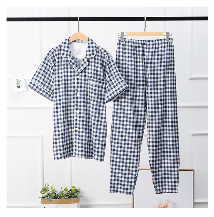 老米优品 / 无印代工厂出品! 情侣款❤ 双层纱经典格短袖家居服 日式小格纹双层纱敲击透气的情侣款家居套装!