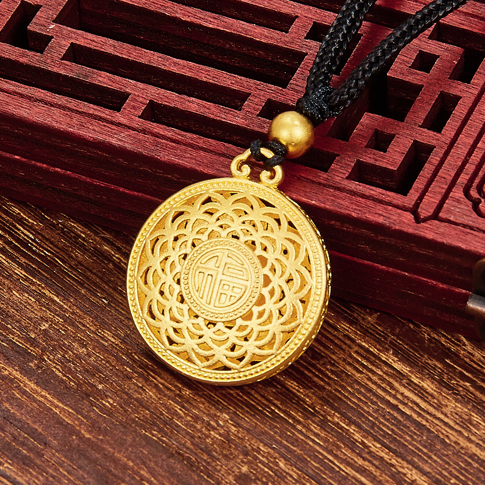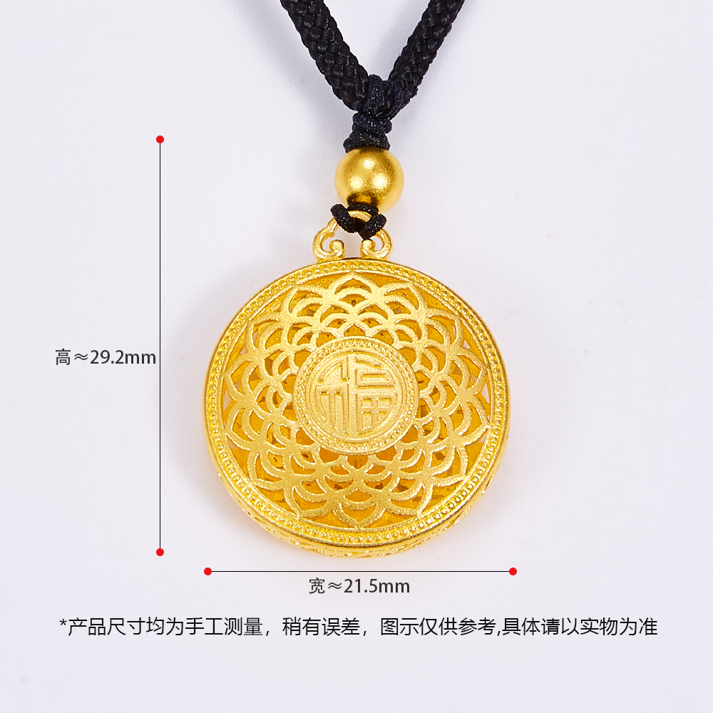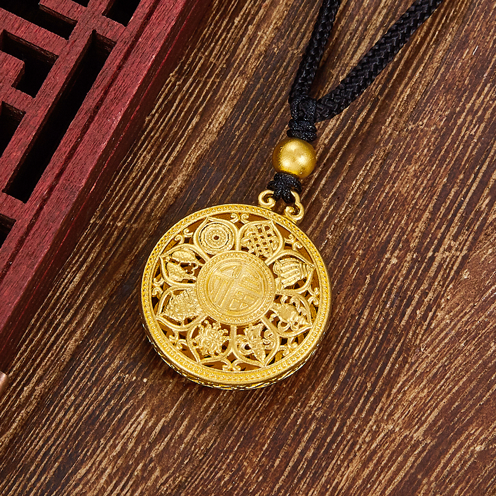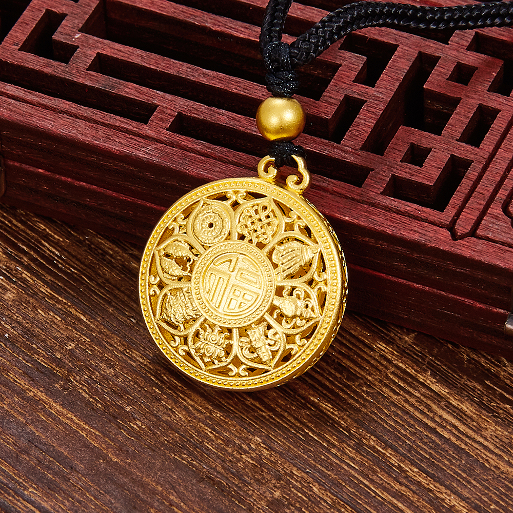 【限时克减150元】足金999 古法镂空福字八方祥瑞罗盘挂绳吊坠(含珠子)(YGFDZ00108-3)(预售产品下单后不退款不退货不换货不补差价)