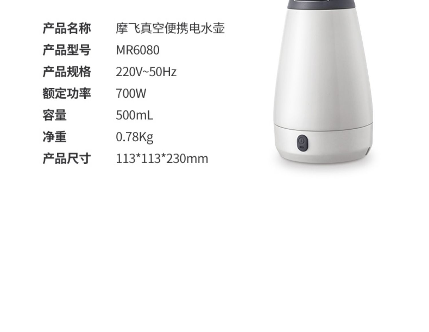 英国摩飞MR6080烧水壶便携式电热水壶旅行大容量保温一体自动家用【摩飞系列】