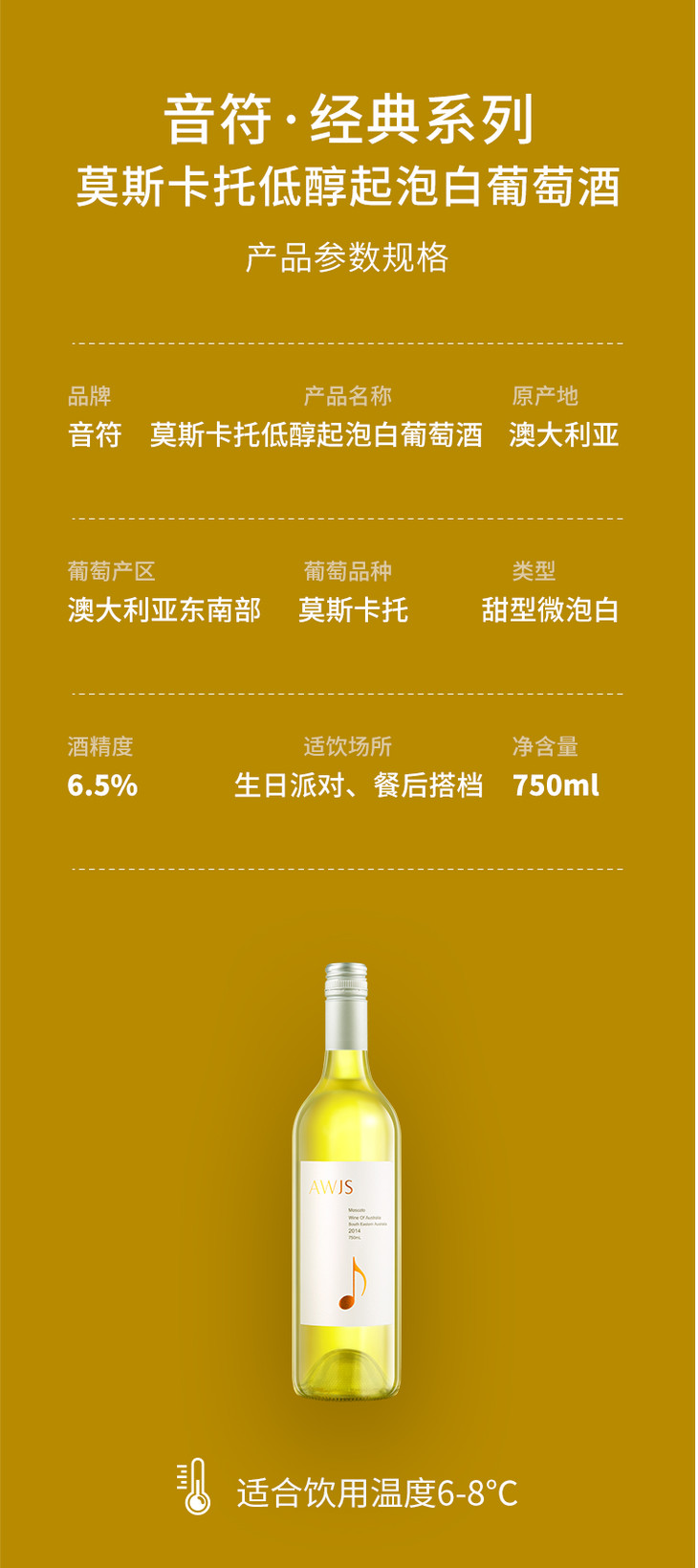 【甜白音符】澳洲进口 低醇起泡白葡萄酒 原瓶原装进口红酒【顺丰包邮】