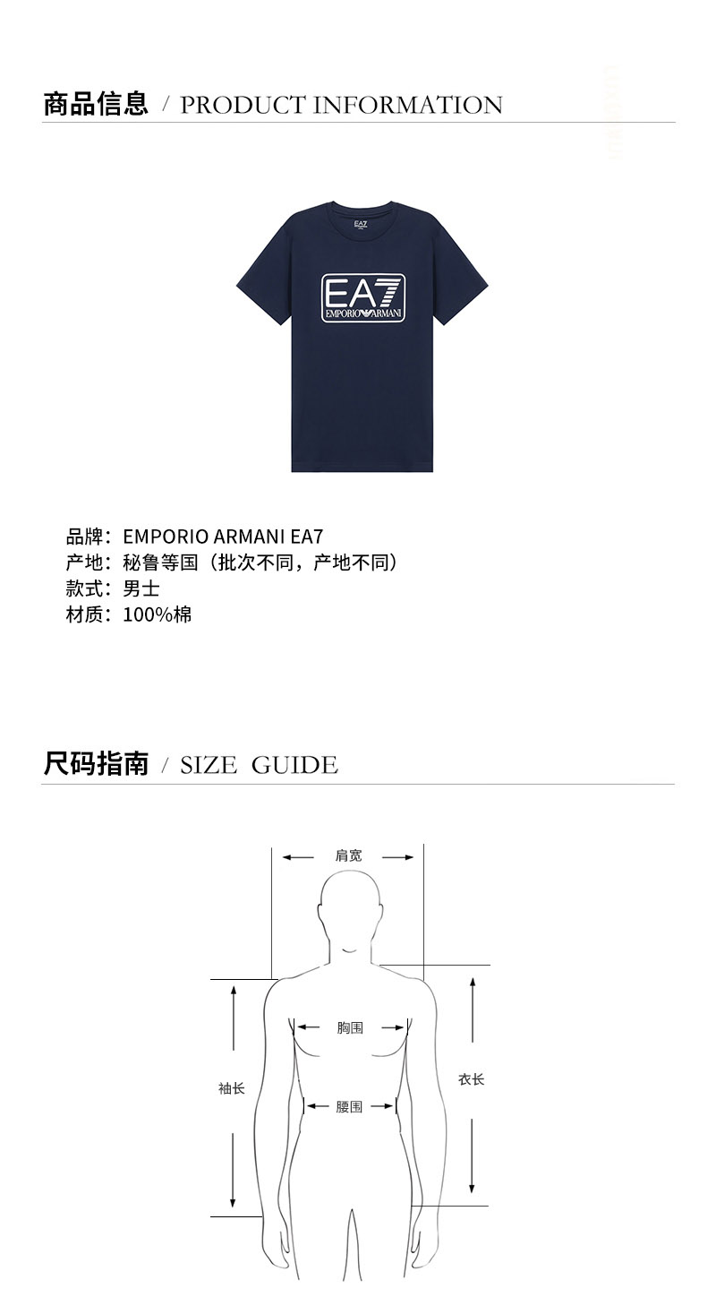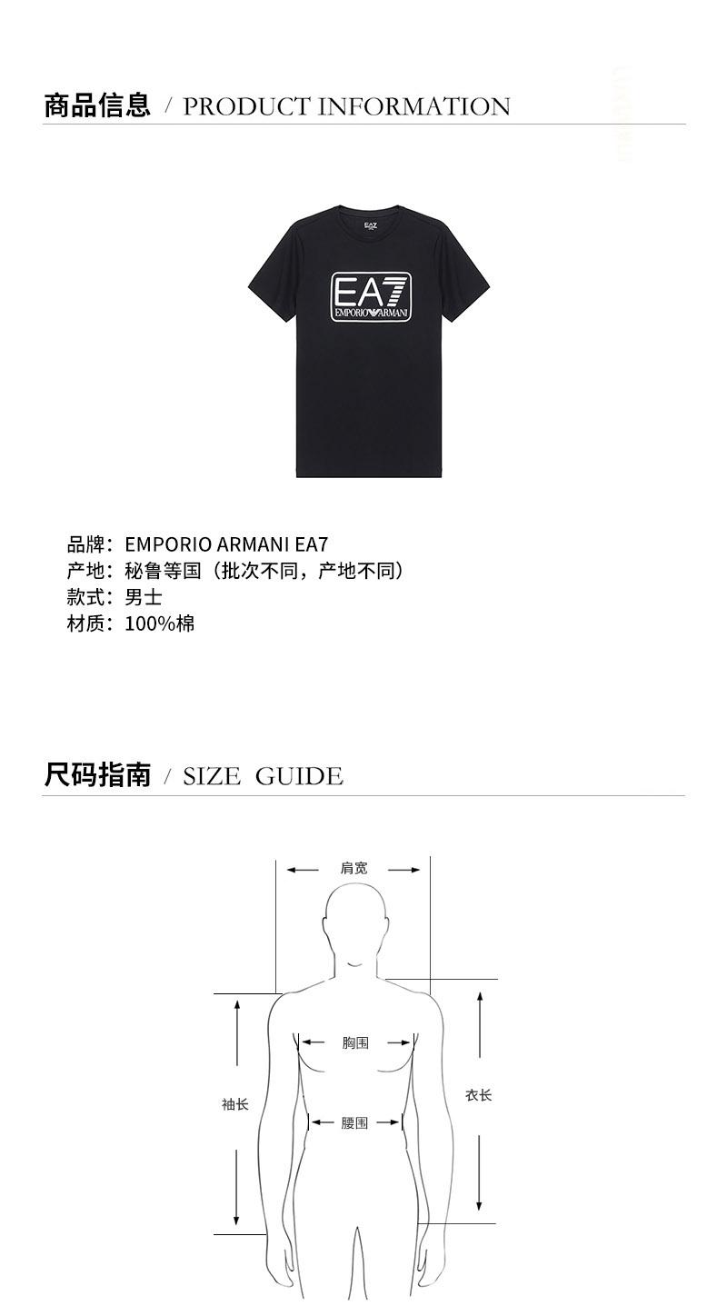 品牌:EA7/EA7产地:秘鲁等国(批次不同,产地不同)款式:男士颜色:白色LOGO图案材质:100%棉