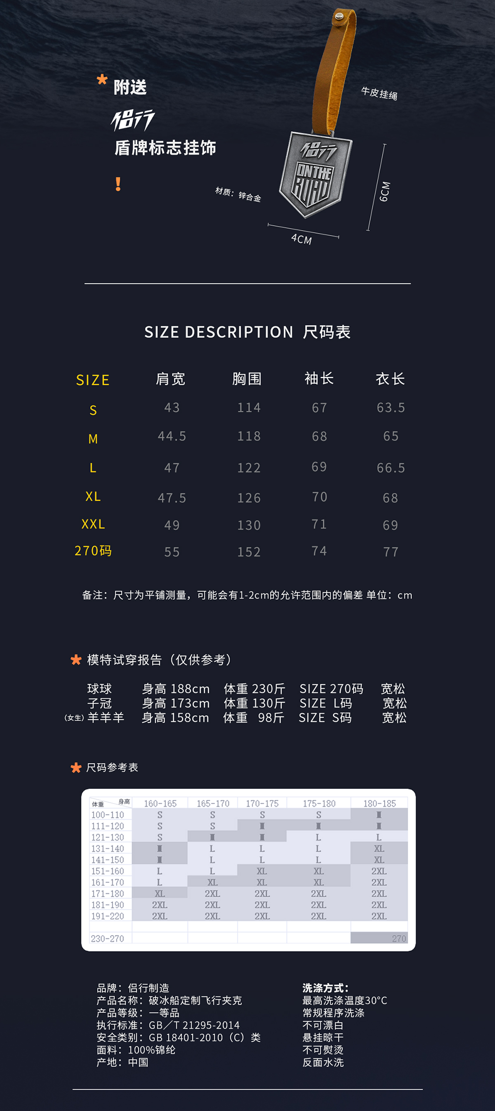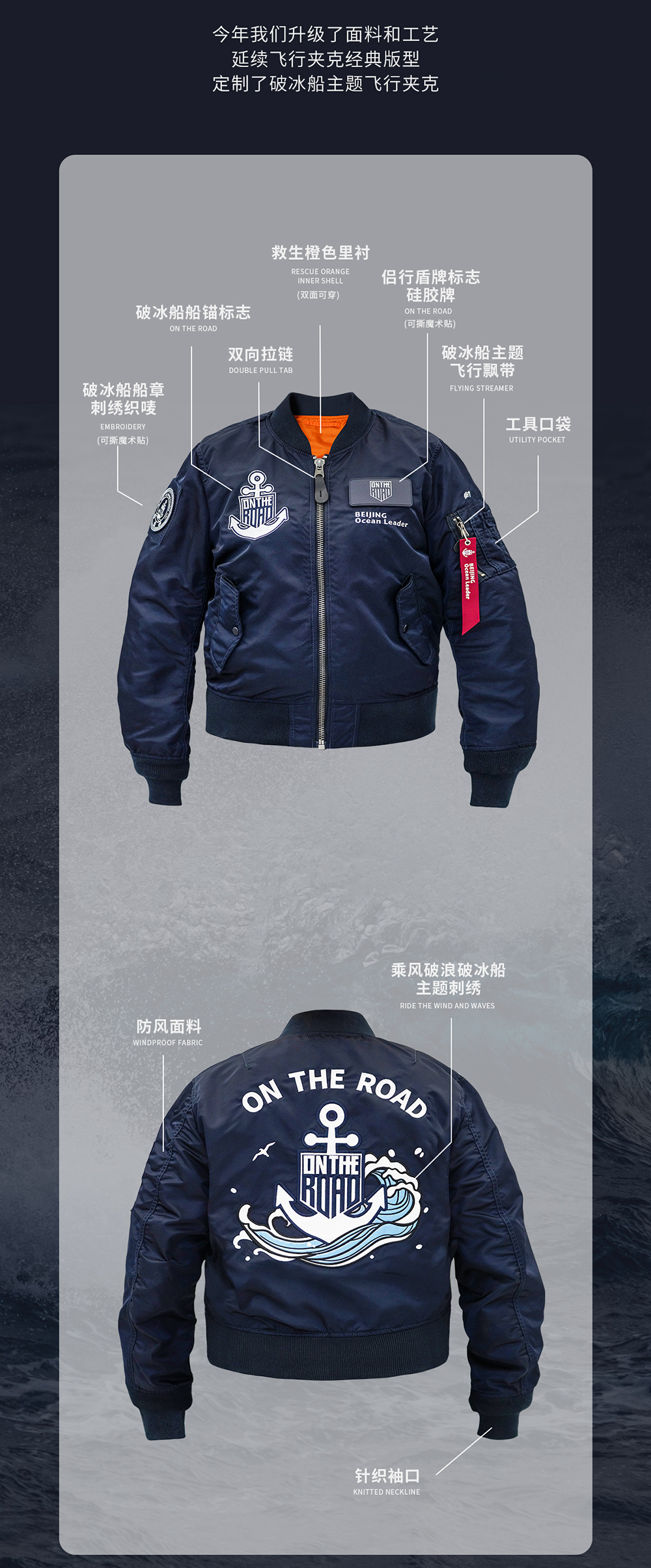 侣行 张昕宇梁红同款 春秋款Ma-1 破冰船舰载直升机限量飞行夹克