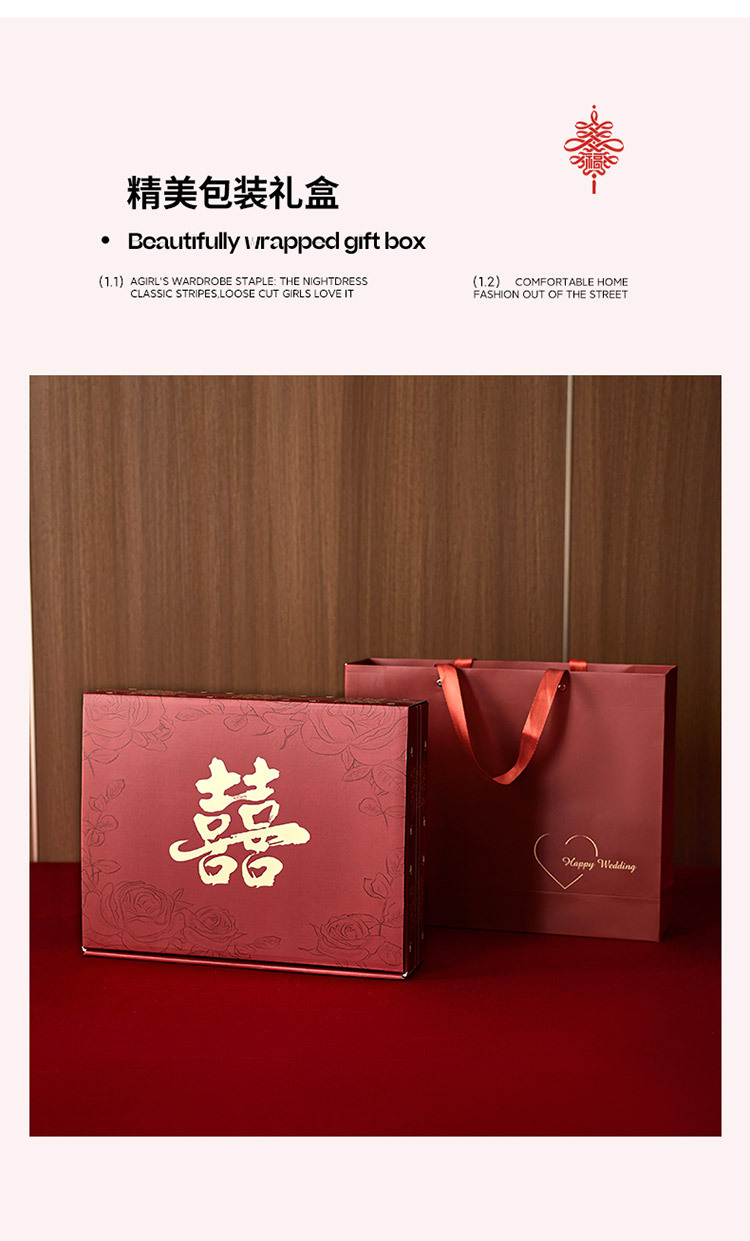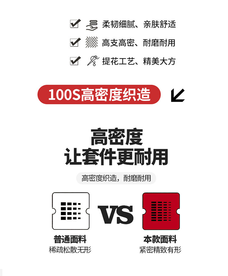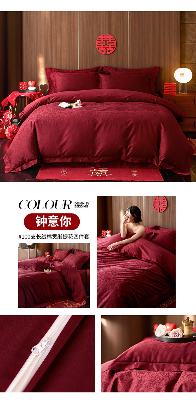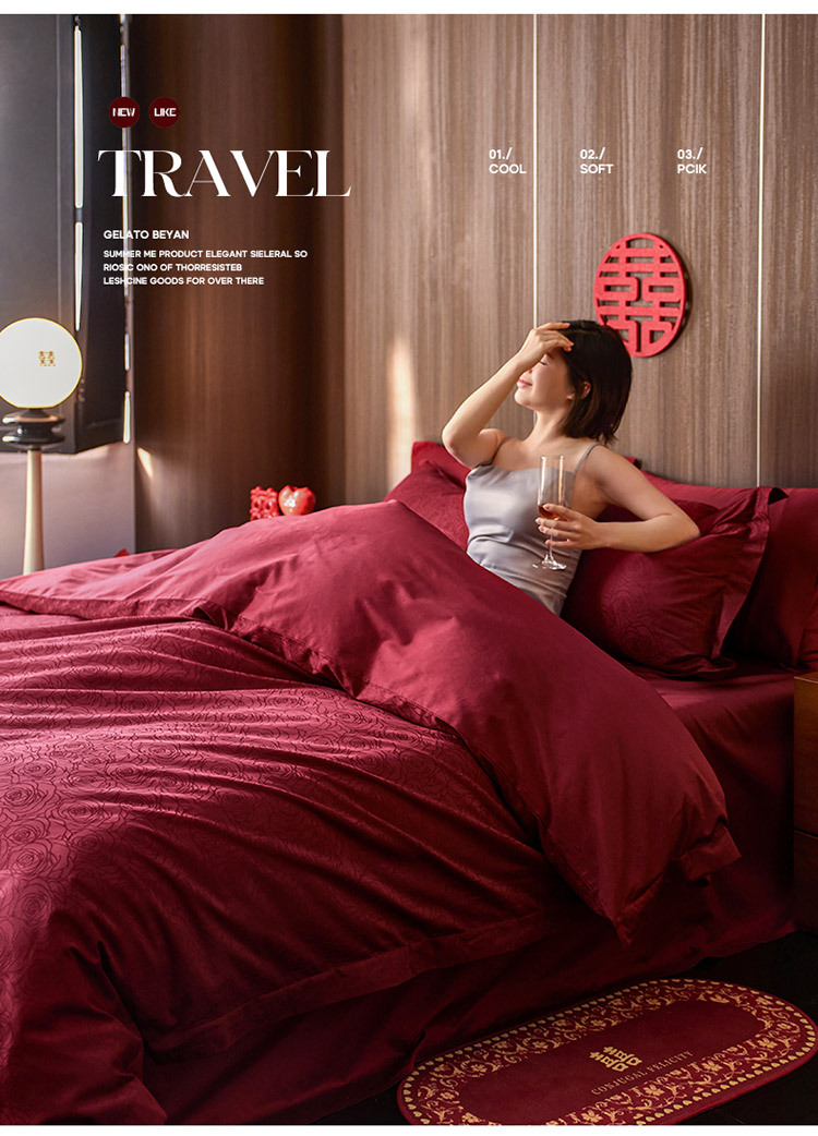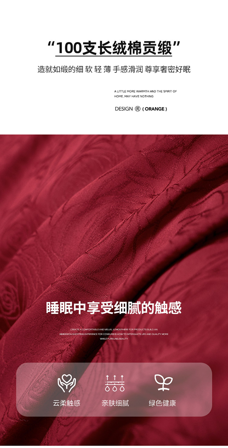 【长绒棉贡缎提花100S四件套】简约中式婚庆四件套长绒棉贡缎提花100S纯棉嫁娶红色全棉结婚床品