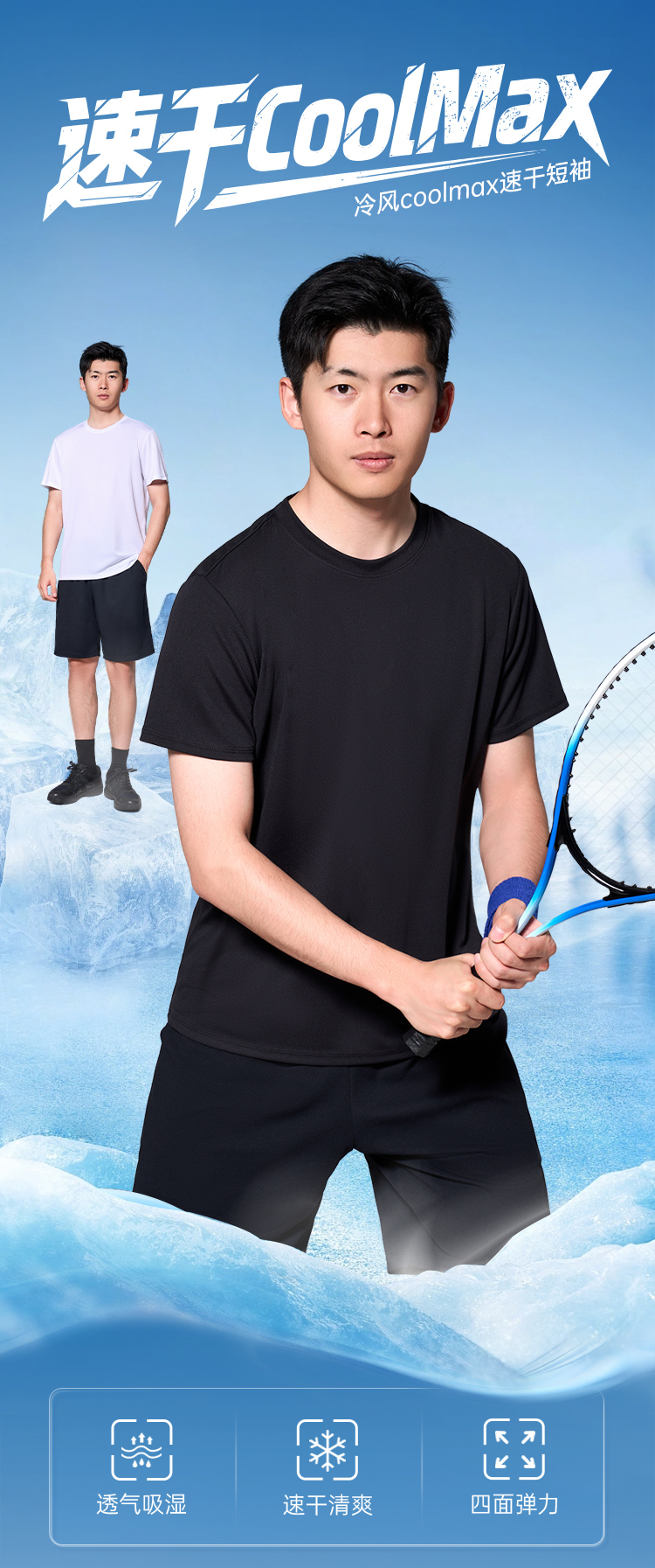 【实付满399送保温杯】【冷风CoolMax速干短袖】透气凉感圆领训练T恤弹力宽松运动短袖上衣