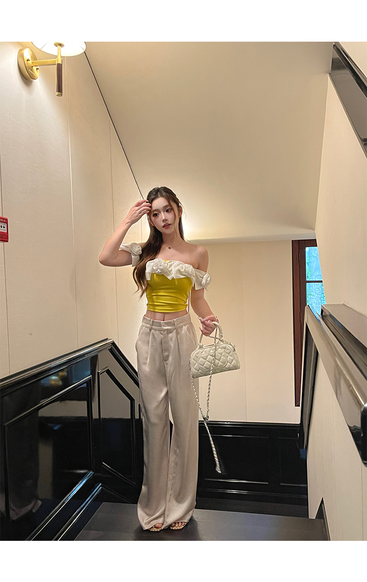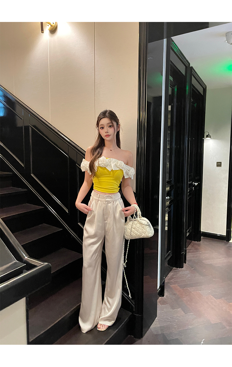 清仓捡漏 LIN张林超 立体雕花抹胸缎面长裤两件套女新款夏季名媛风时尚套装
