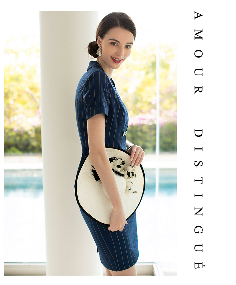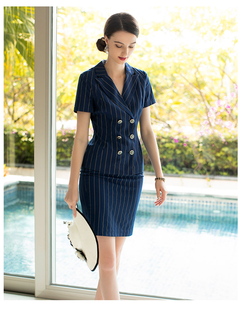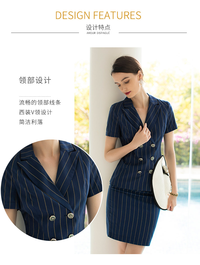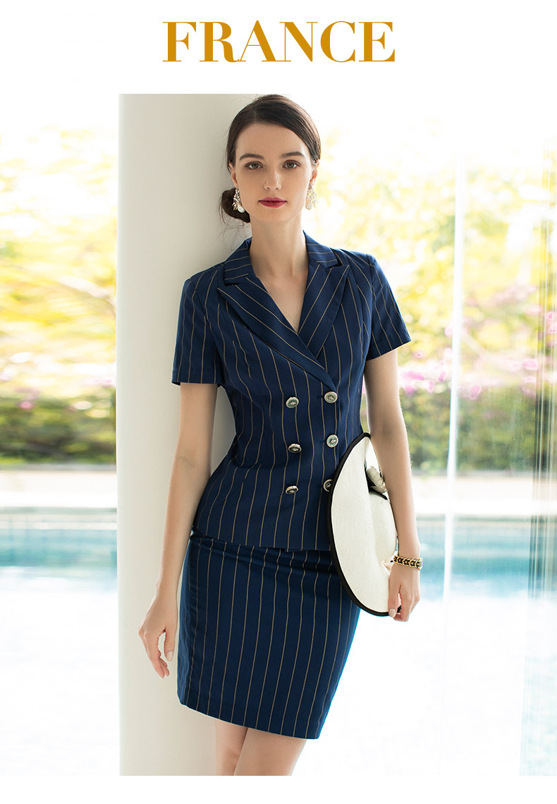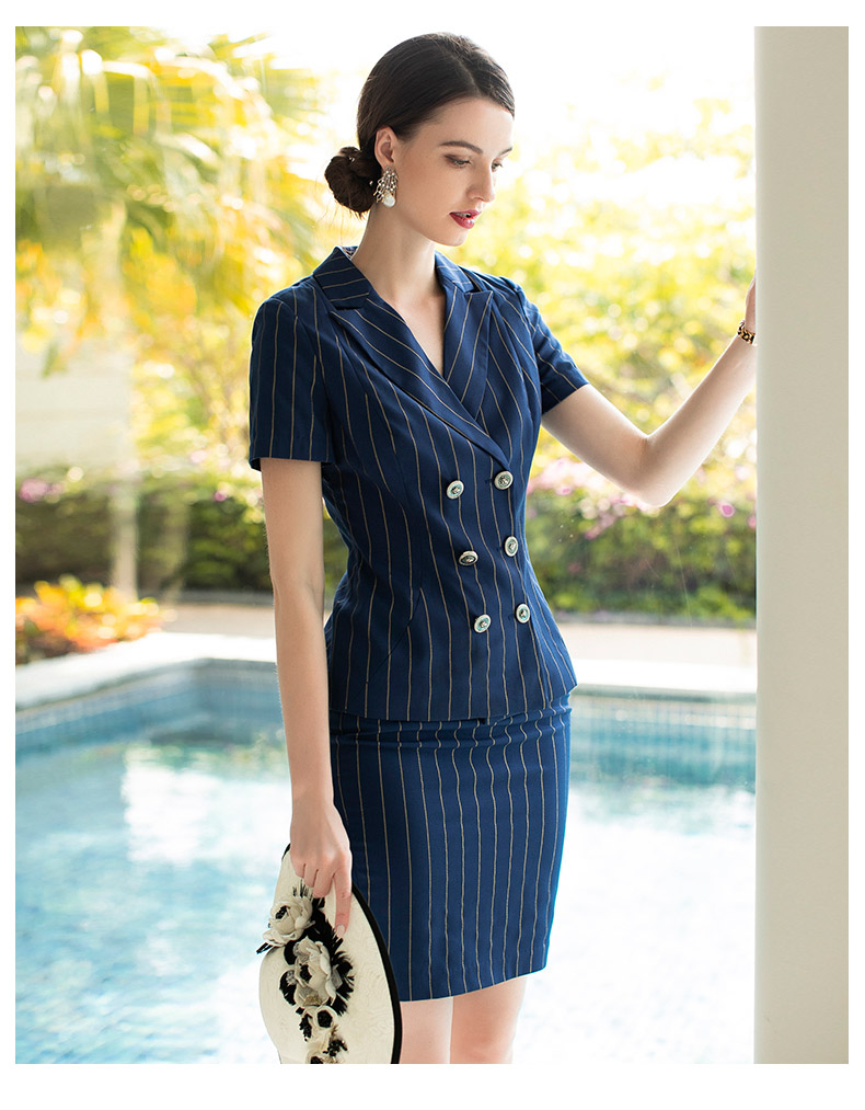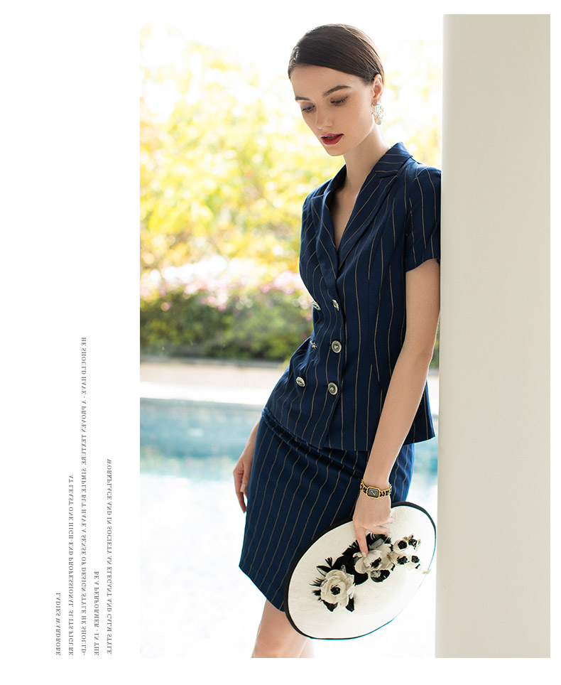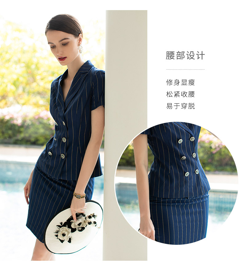 IWY/时尚气质蓝色条纹短袖西装套裙职业装女装通勤白领正装CS0341