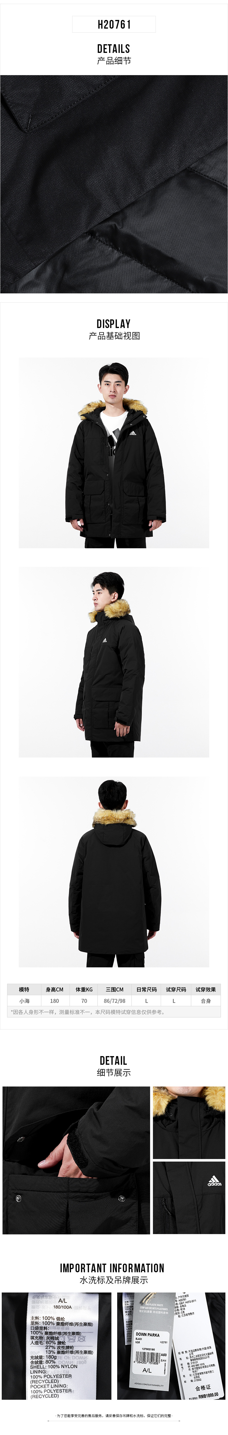 adidas阿迪达斯官方网男装 21冬季新品健身户外跑步训练运动服保暖透气休闲羽绒服外套H20761