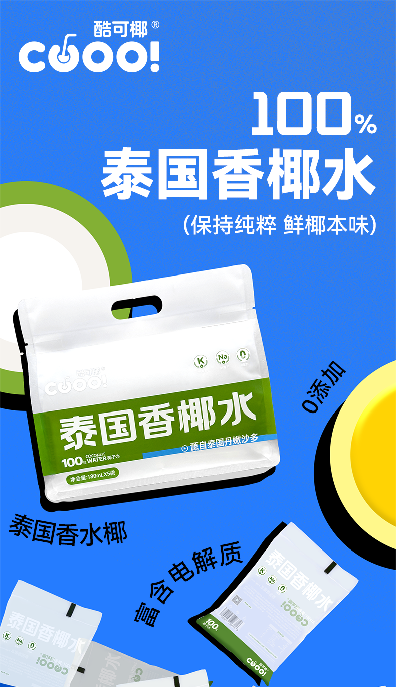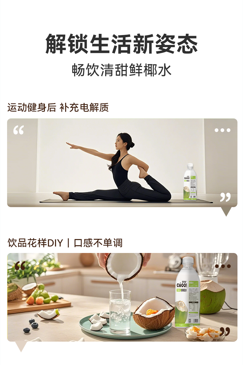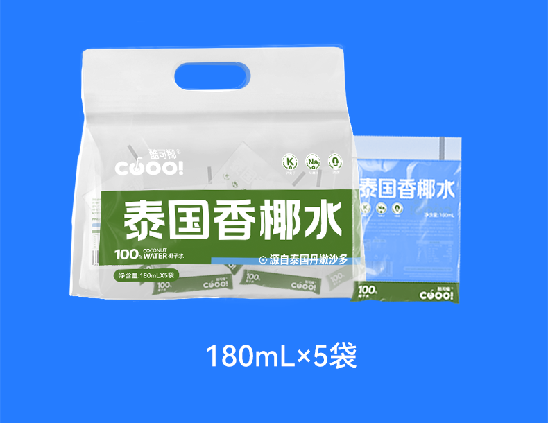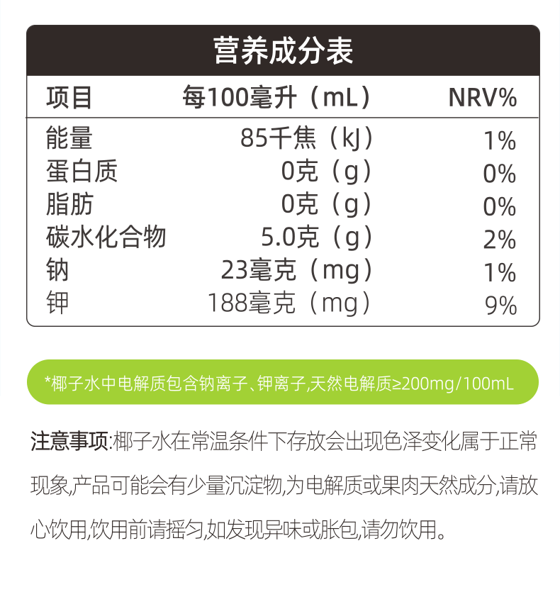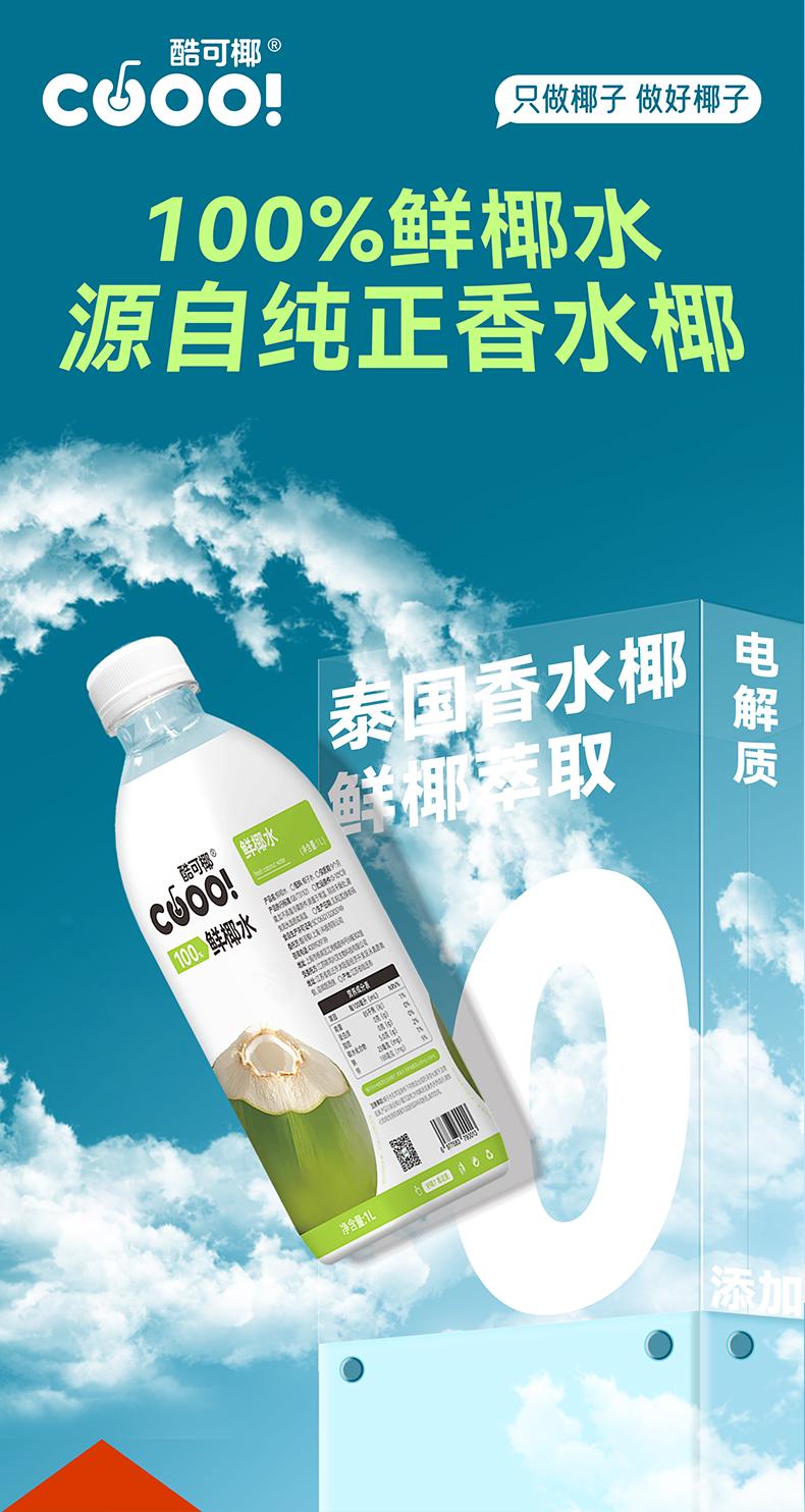 酷可椰 100% 鲜椰水/泰国香椰水 配料表只有椰子水,热量更低,好喝无负担;富含电解质,高效补水;