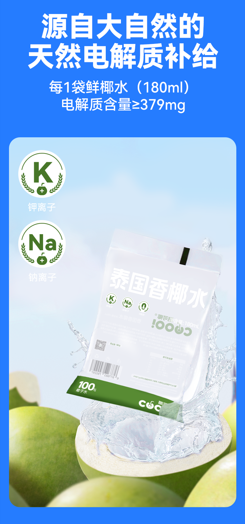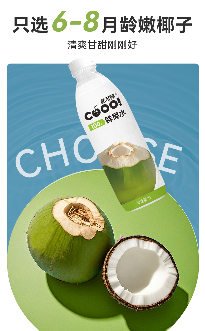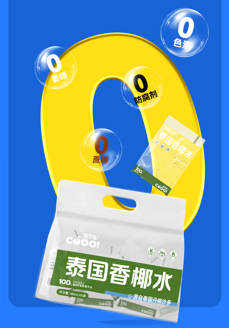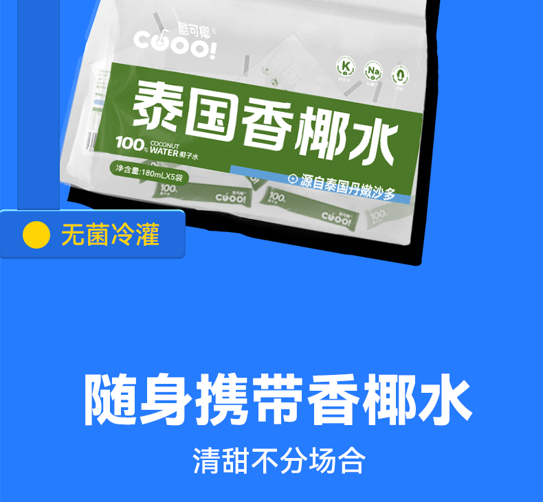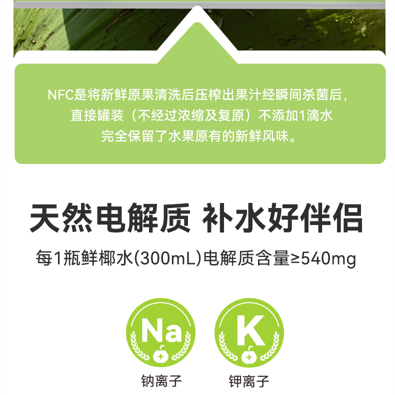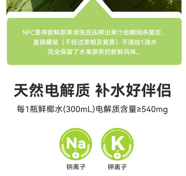 酷可椰 100% 鲜椰水/泰国香椰水 配料表只有椰子水,热量更低,好喝无负担;富含电解质,高效补水;