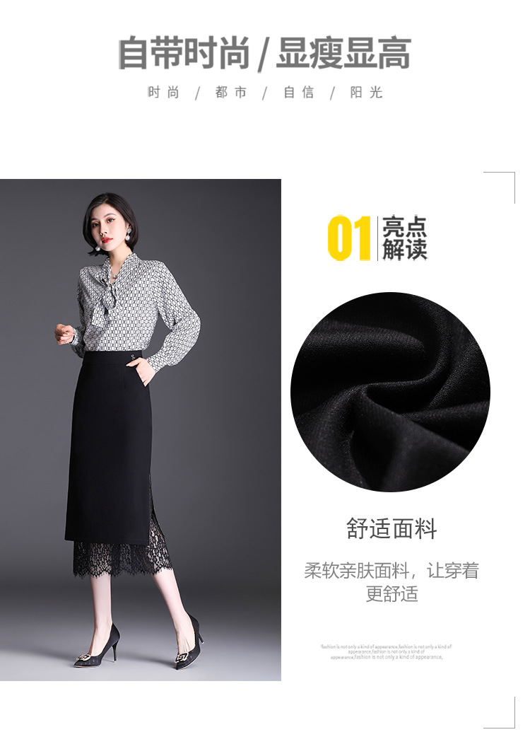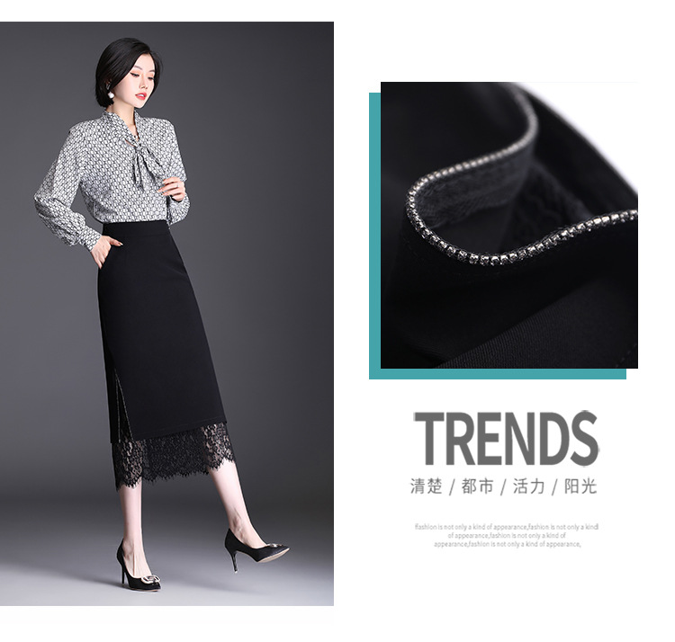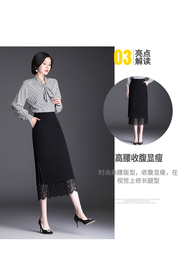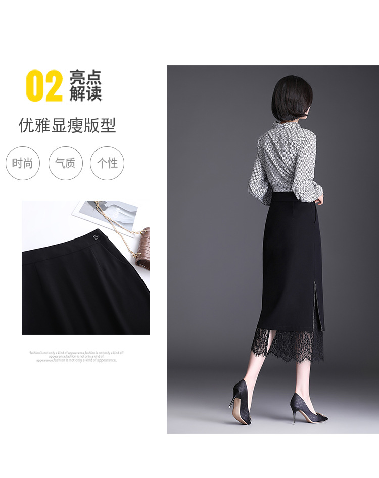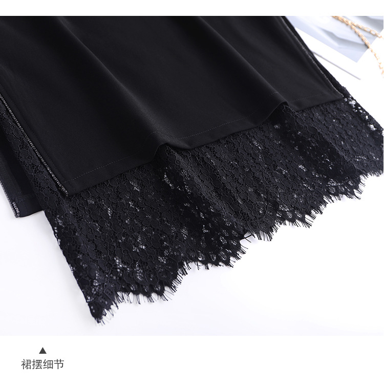 高腰显瘦包臀裙垂感开叉蕾丝花边裙 TY2133